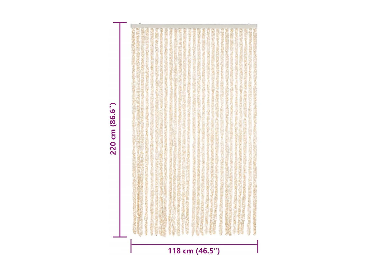 Rideau anti-mouches beige et blanc 118x220 cm chenille