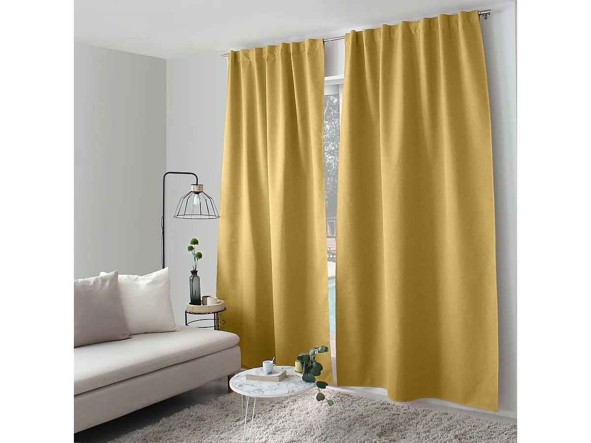2 rideaux occultant à œillets, jaune moutarde, 140x240cm, 100% polyester, collection Réglisse