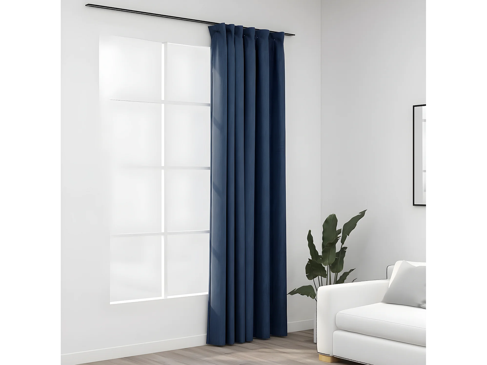 Rideau occultant d'aspect de lin avec crochets Bleu 290x245 cm QBH85907