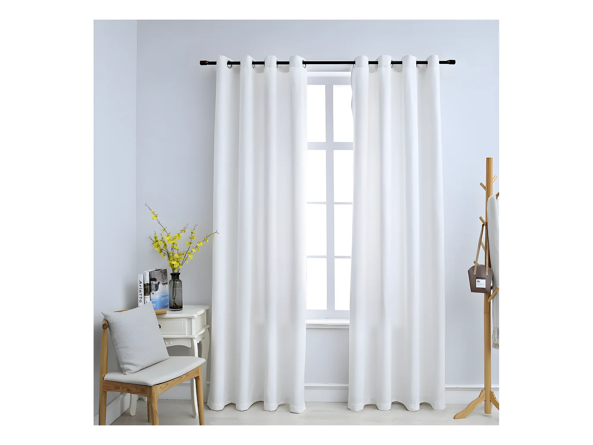 Rideau occultant et anneaux en métal 2pcs Blanc cassé 140x225cm QBH61604