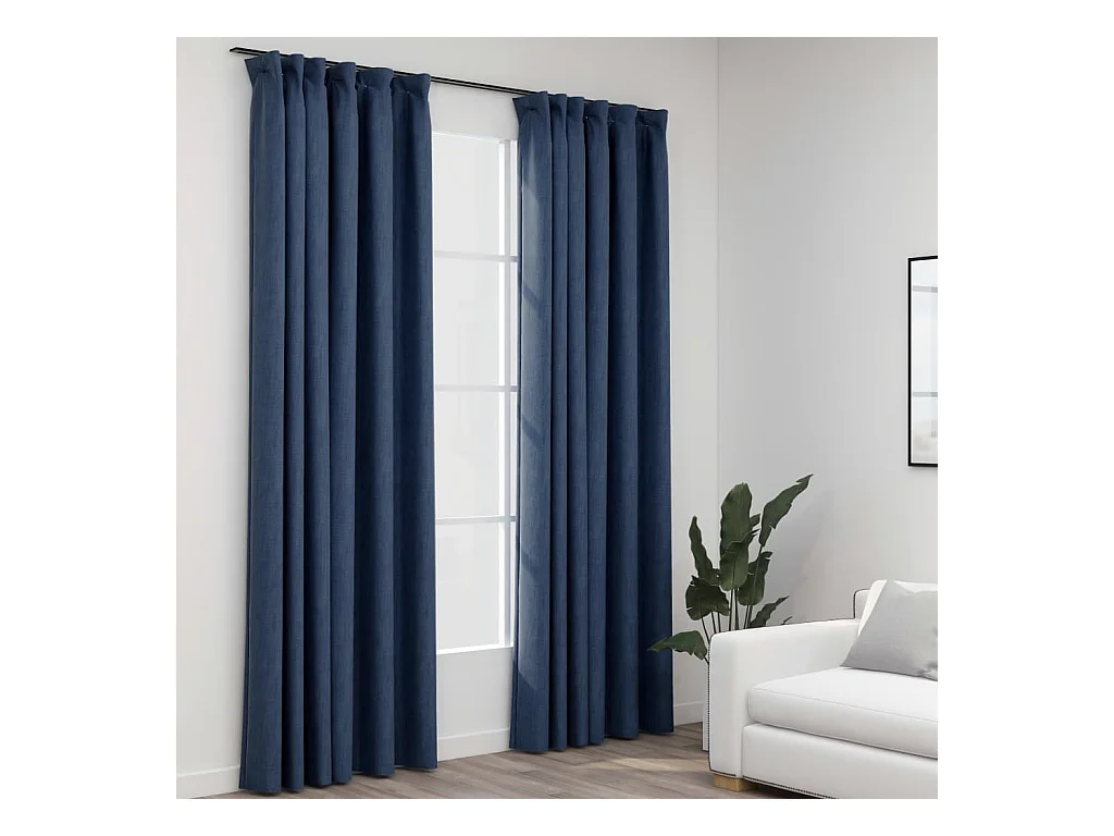 Rideaux occultants aspect lin avec crochets 2pcs Bleu 140x175cm