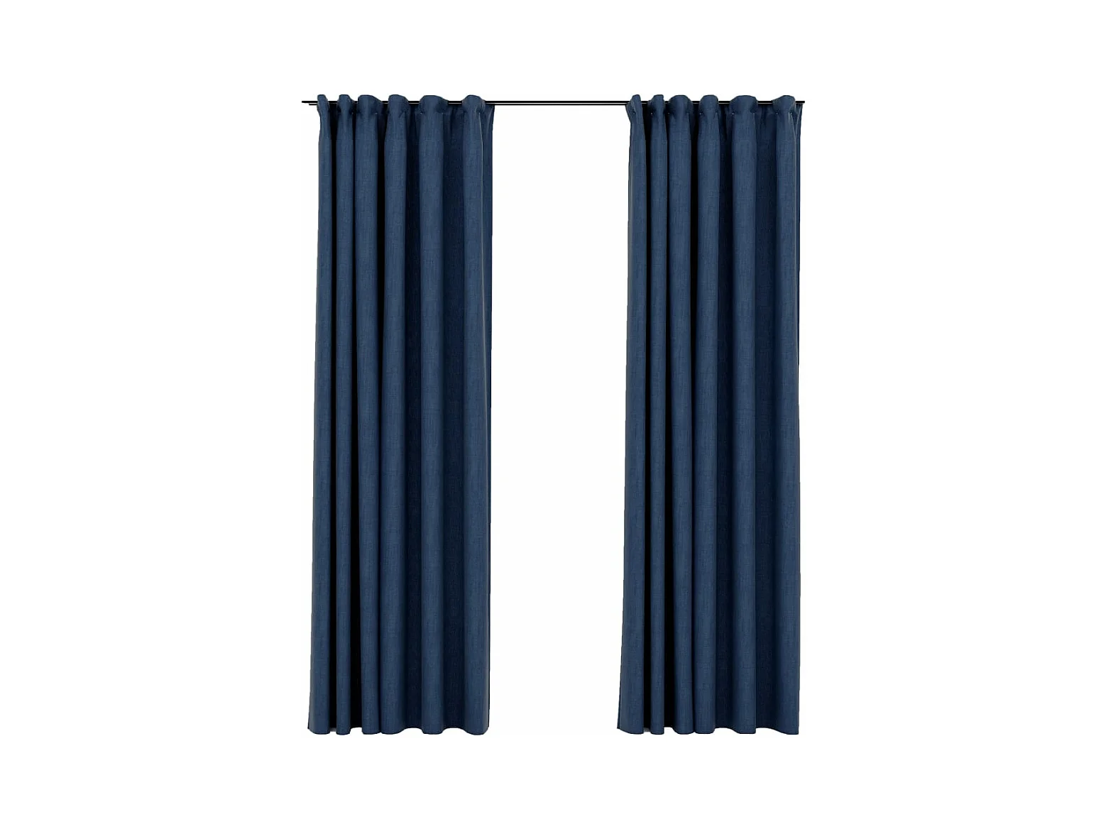 Rideaux occultants aspect lin avec crochets 2pcs Bleu 140x225cm