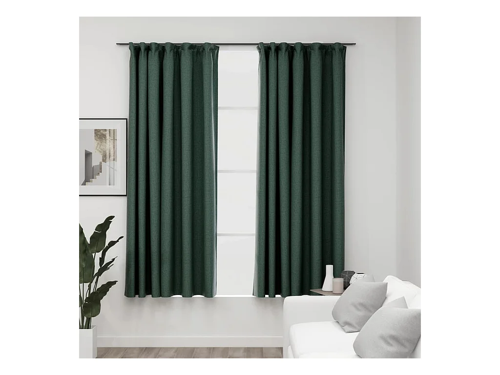 Rideaux occultants aspect lin avec crochets 2pcs Vert 140x175cm