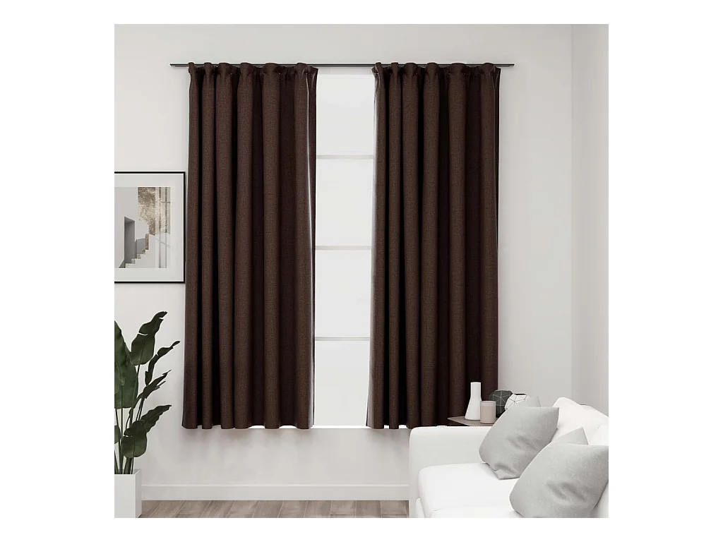 Rideaux occultants aspect lin et crochets 2 pcs Taupe 140x175cm