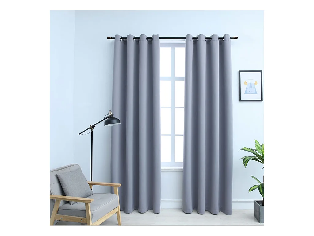 Rideaux occultants avec anneaux en métal 2 pcs Gris 140x175 cm