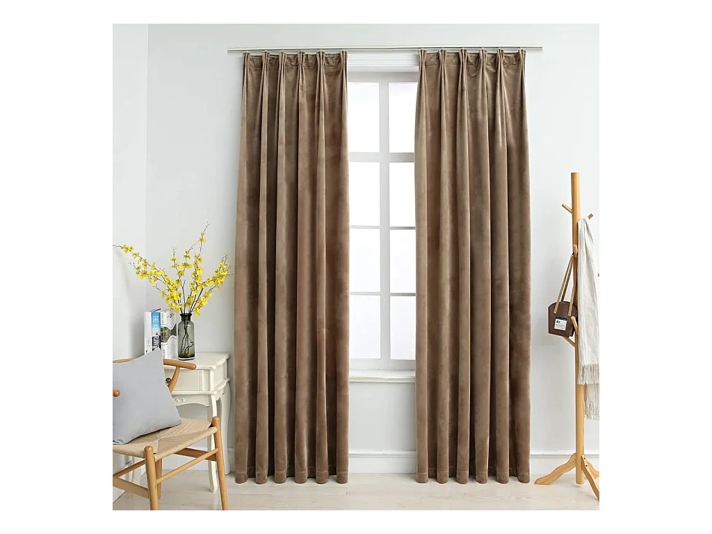 Rideaux occultants avec crochets 2 pcs Velours Beige 140x245 cm