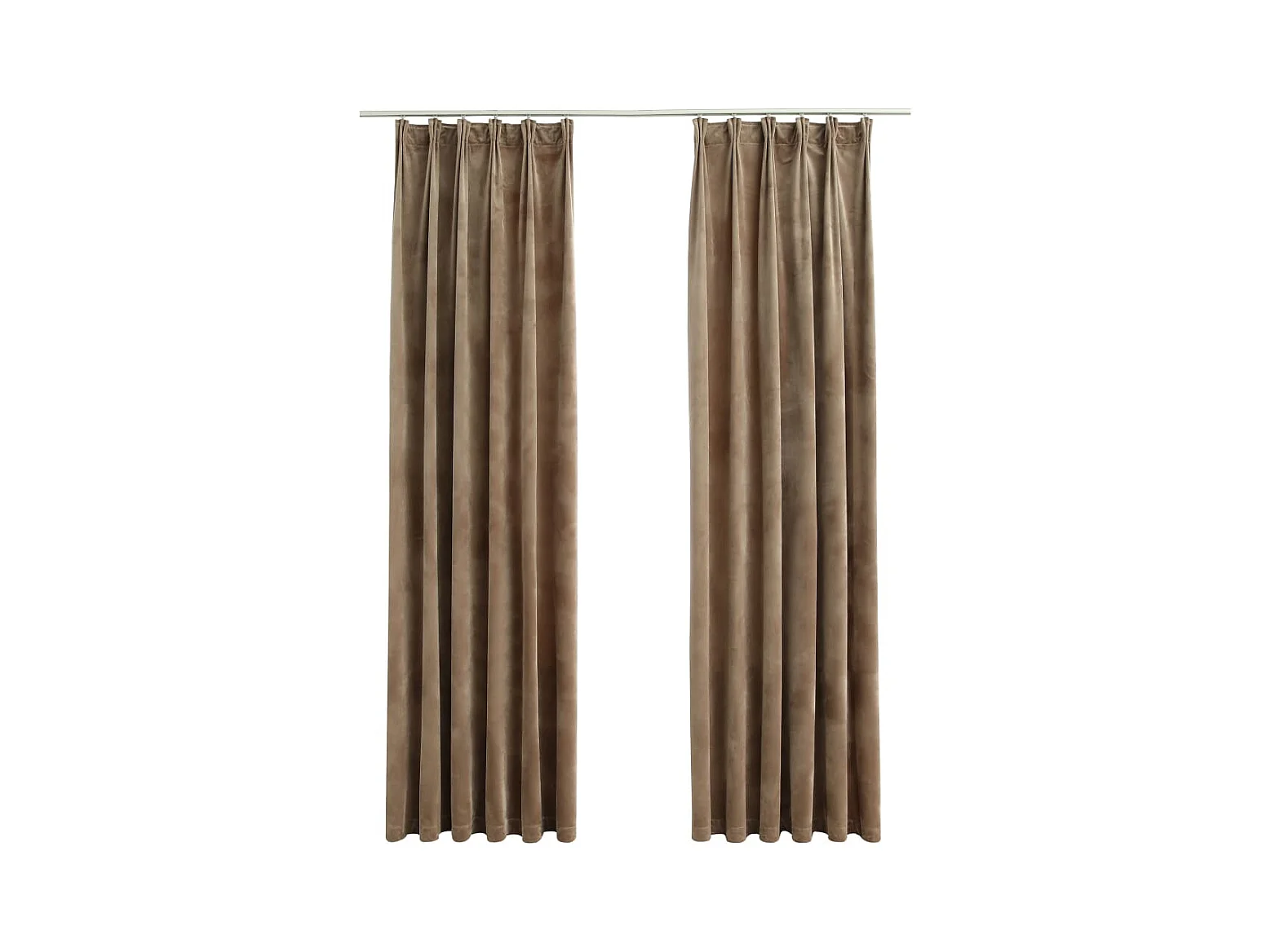 Rideaux occultants avec crochets 2 pcs Velours Beige 140x175 cm