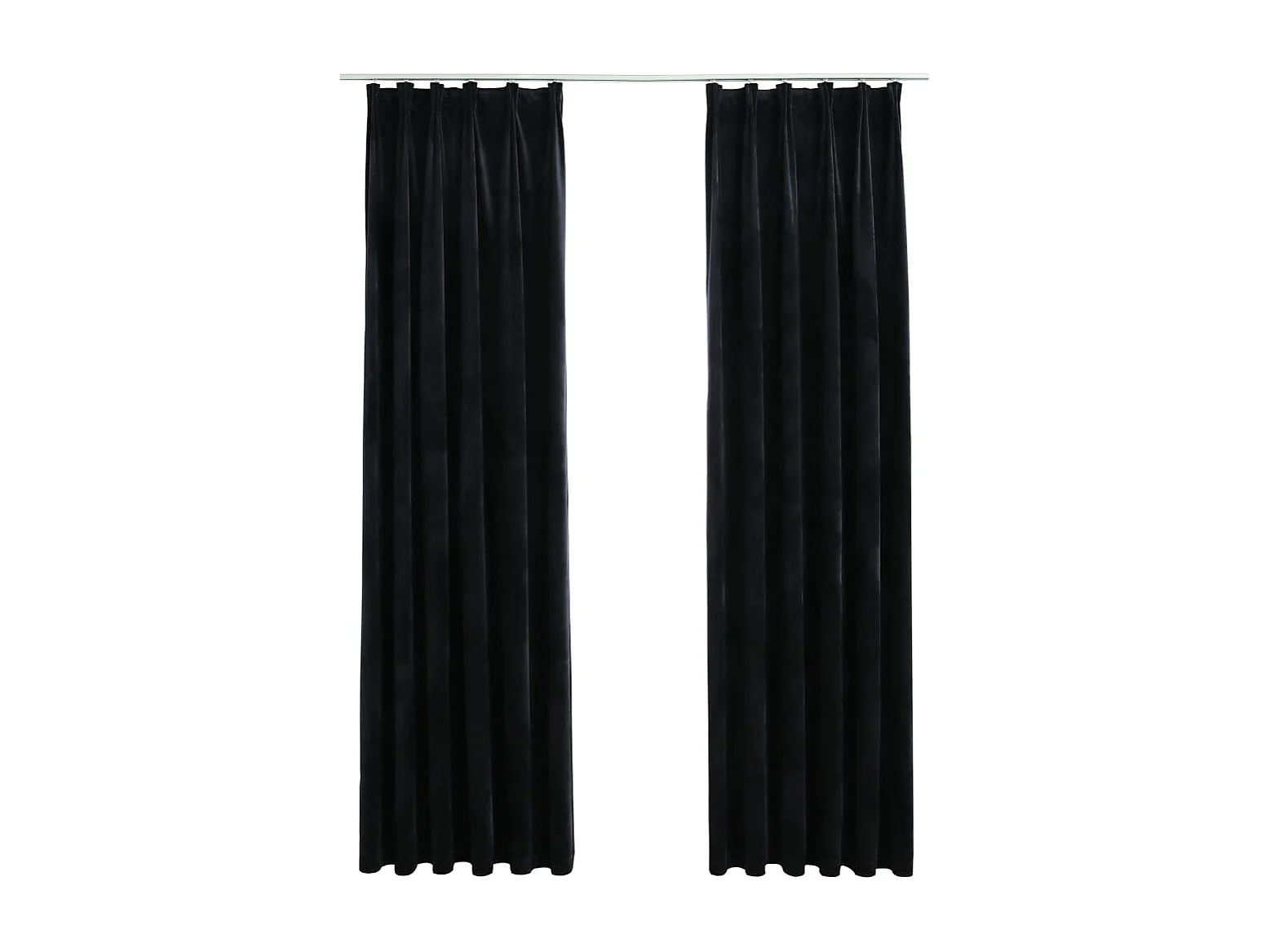 Rideaux occultants avec crochets 2 pcs Velours Noir 140x175 cm QBH27327
