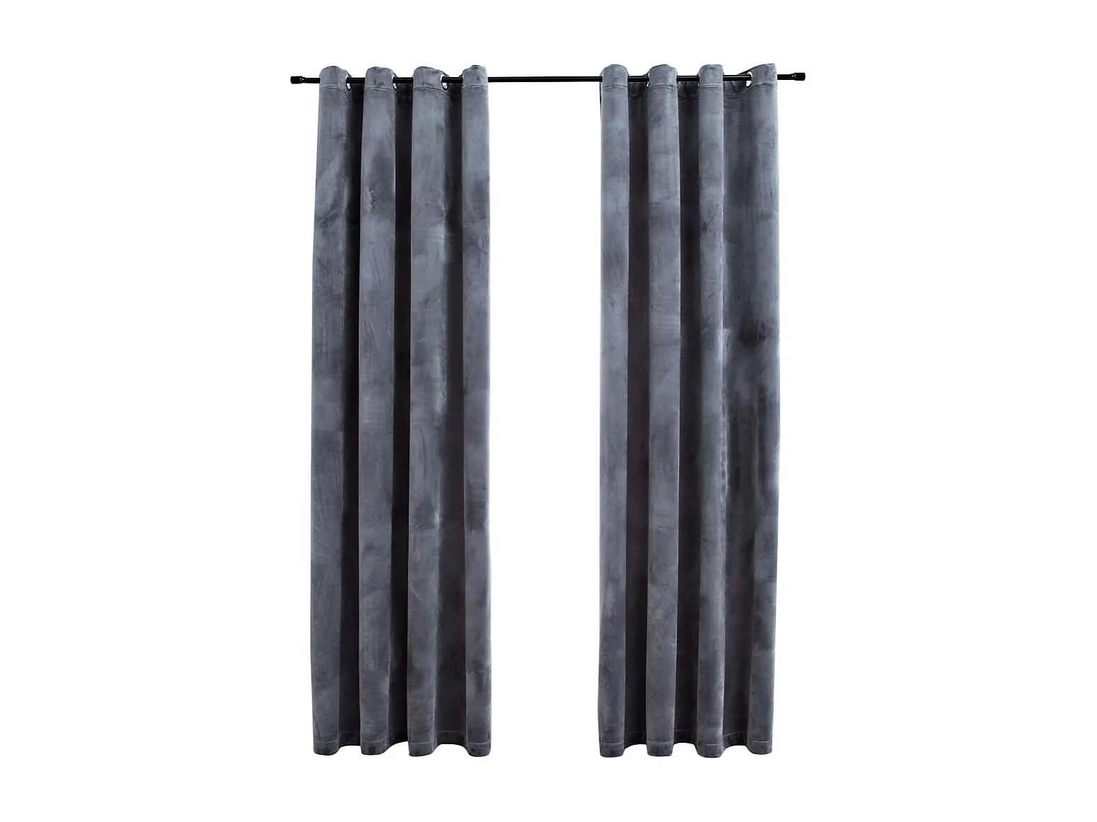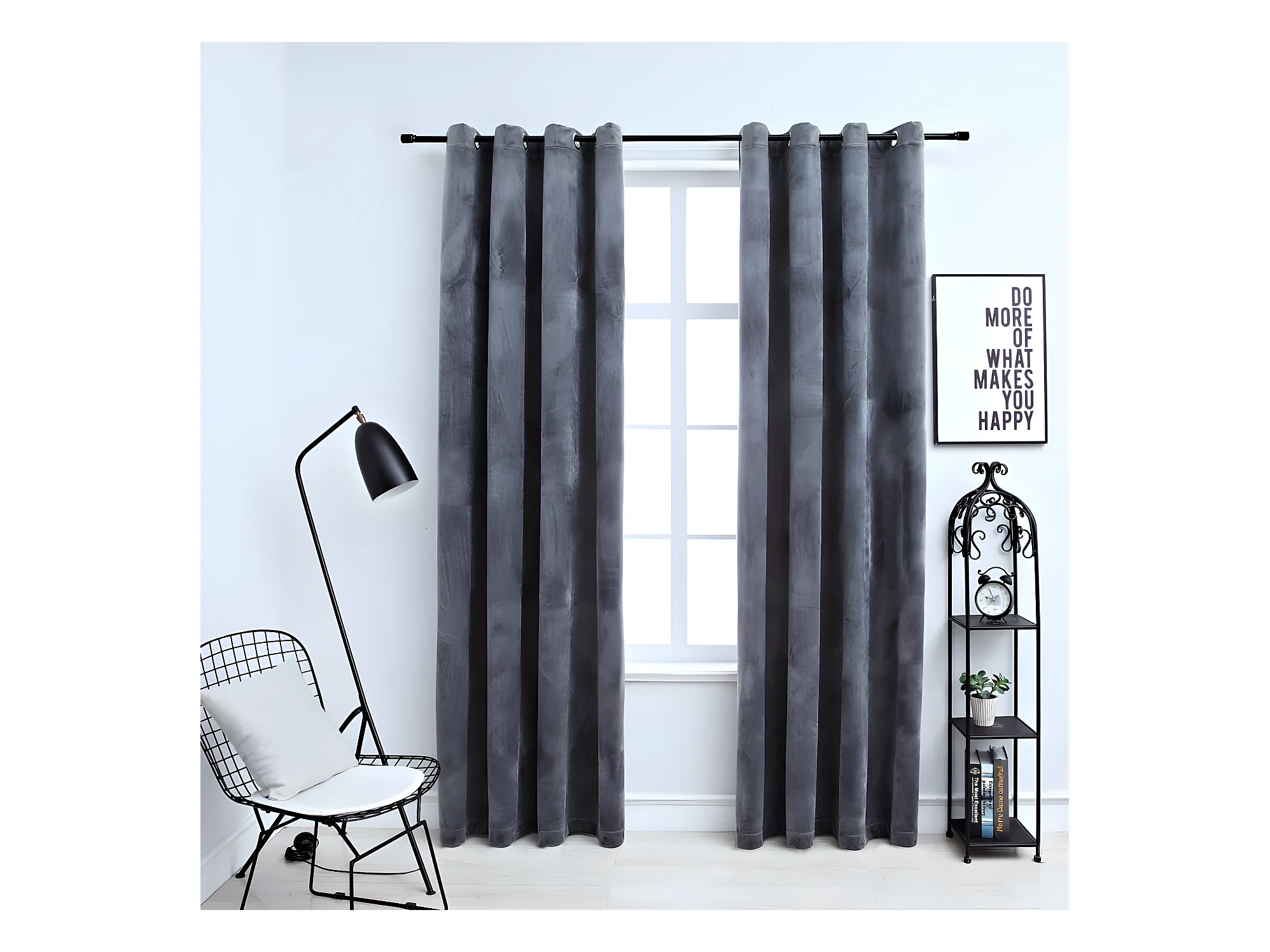 Rideaux occultants et anneaux 2pcs Velours Anthracite 140x245cm QBH97025