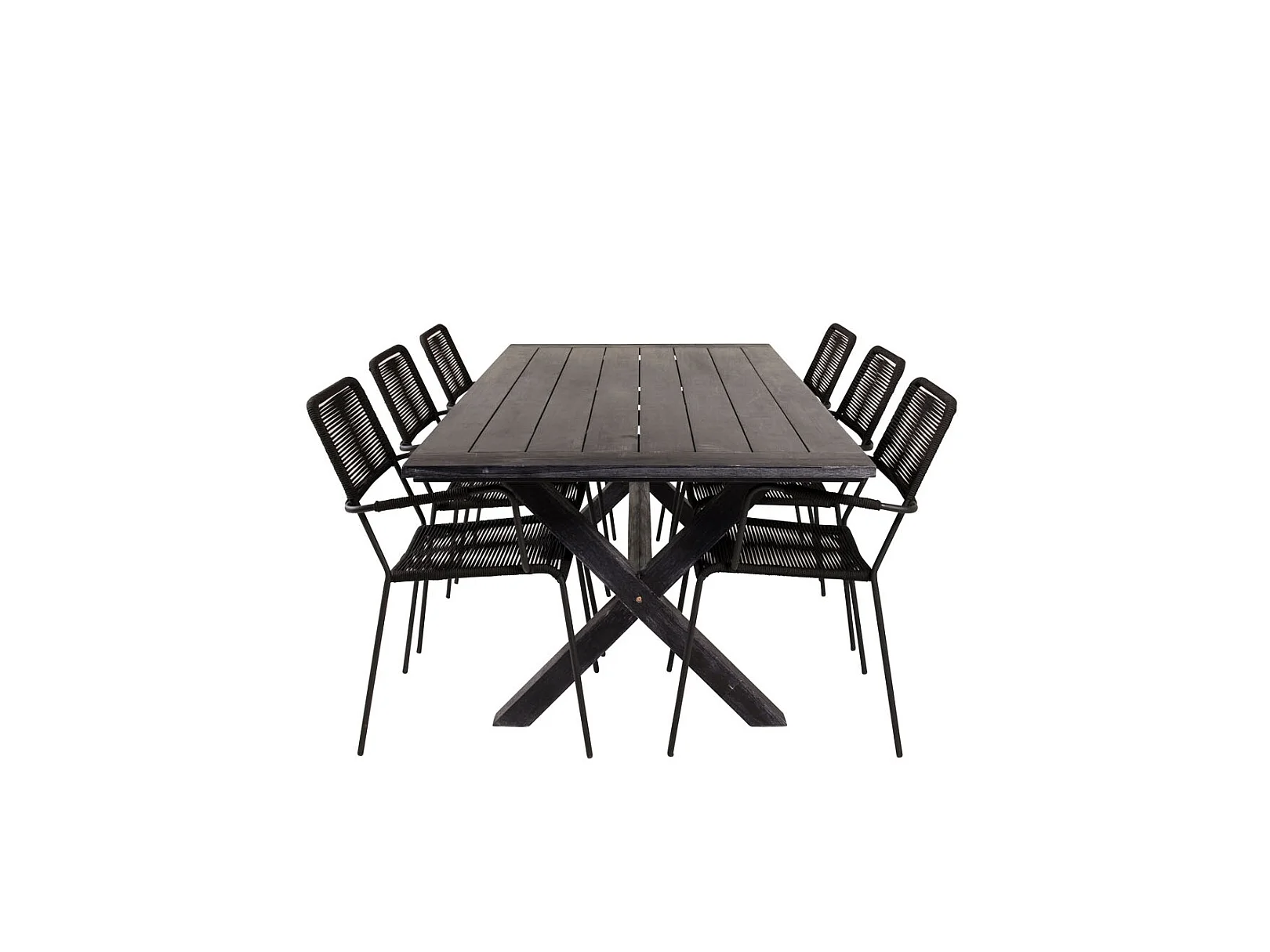 Rives Ensemble table et chaises de jardin, table 100x200cm et 6 chaises Lindos avec accoudoirs, noir.