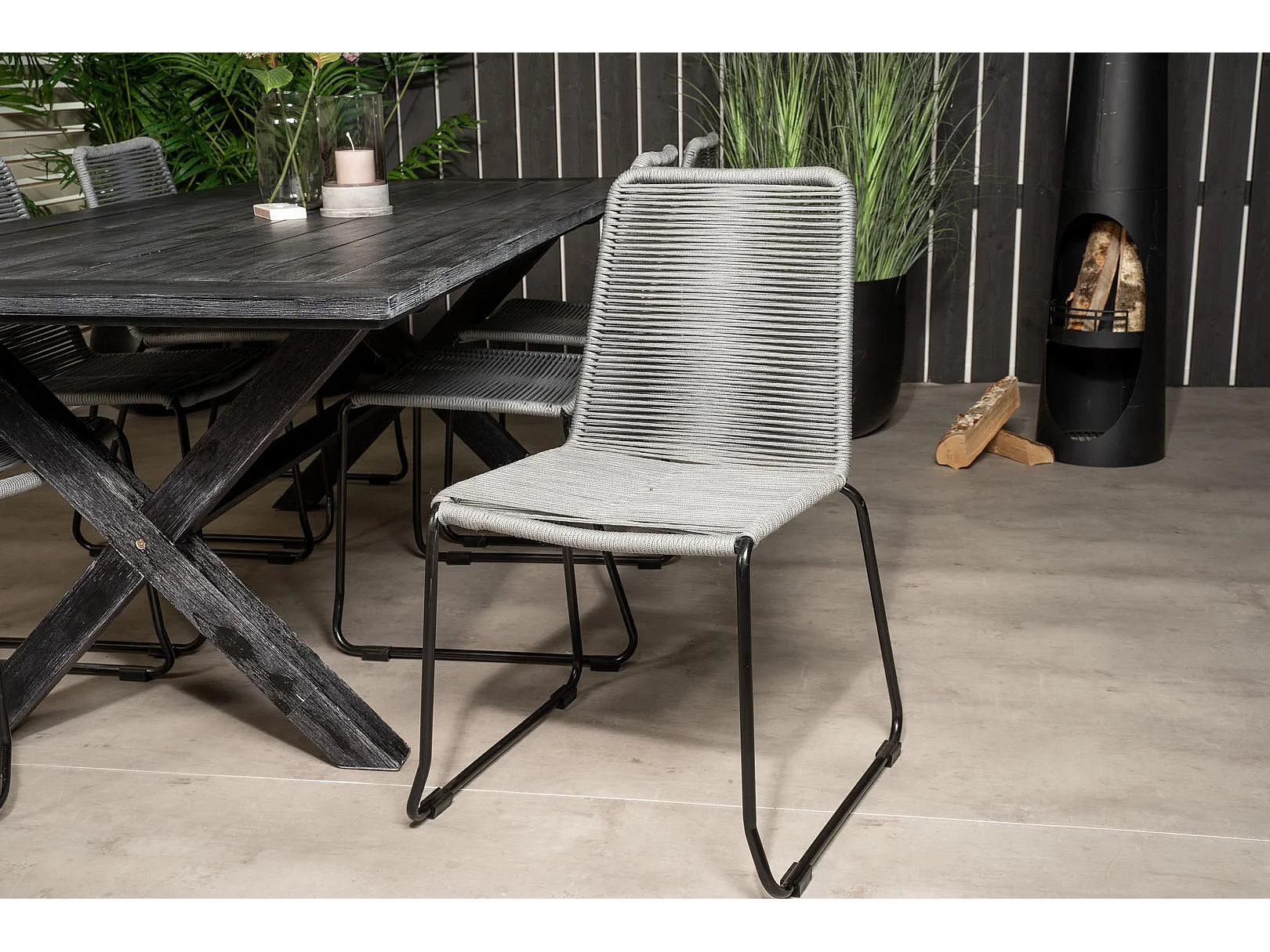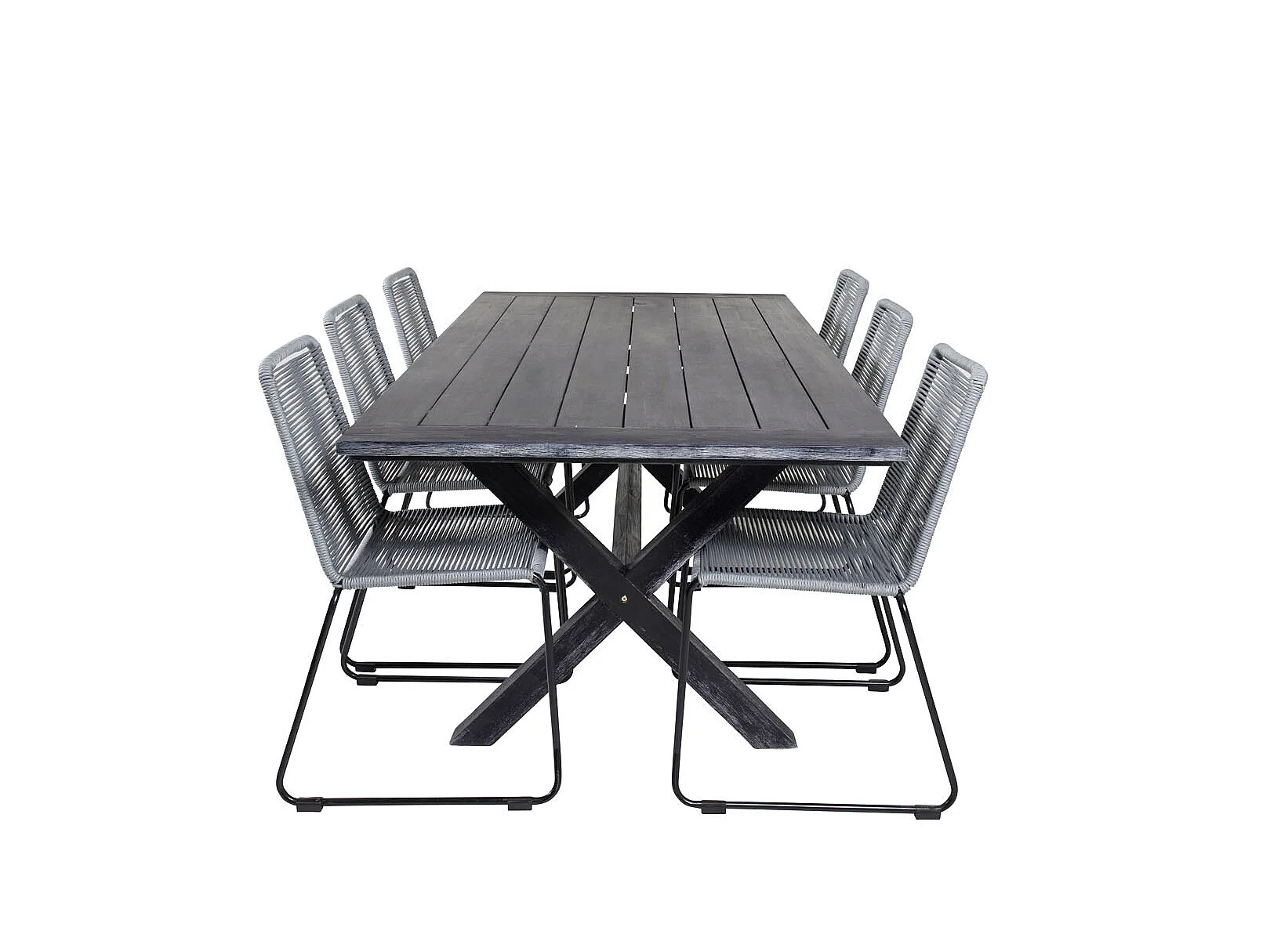 Rives Ensemble table et chaises de jardin, table 100x200cm et 6 chaises Lindos, noir.