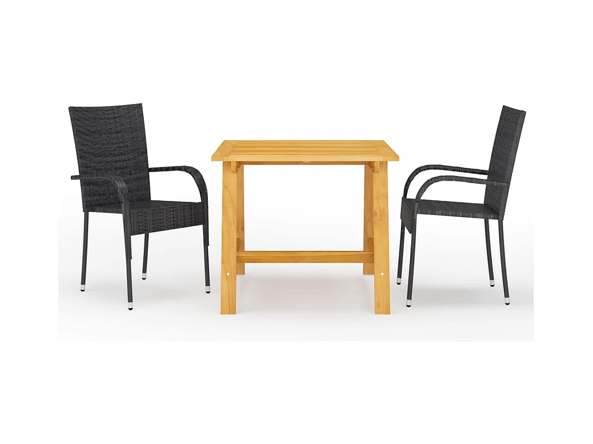 Yildiz Ensemble à manger de jardin 3 pcs Noir