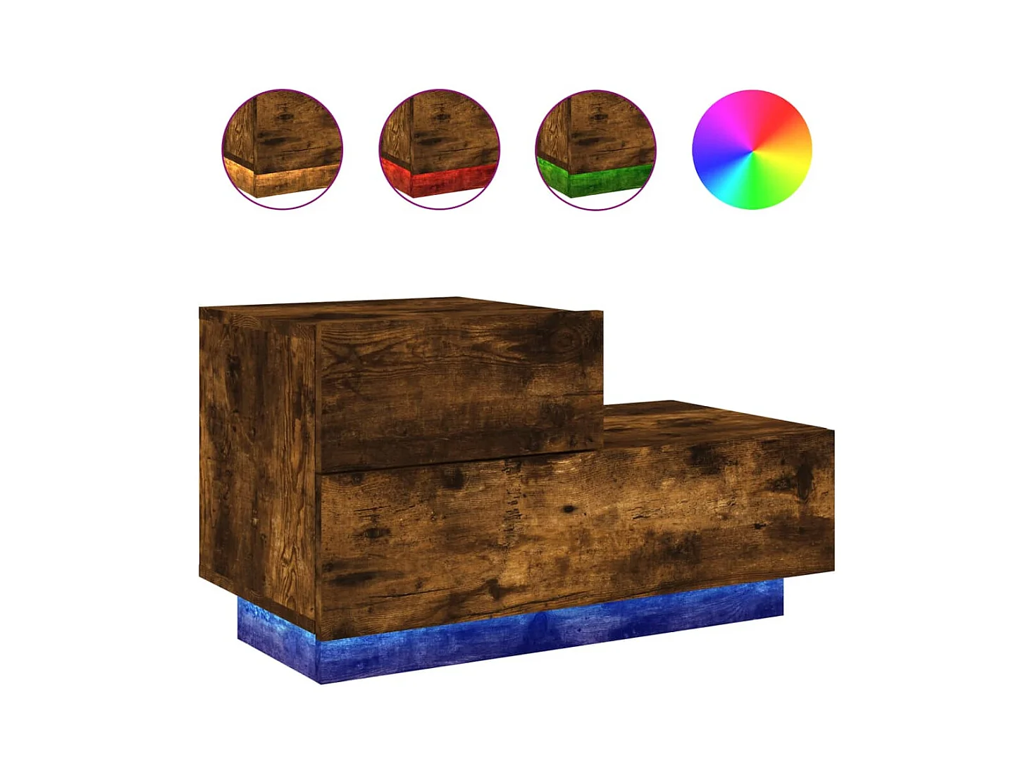 Robbie Table de chevet avec lumières LED chêne fumé 70x36x40,5 cm