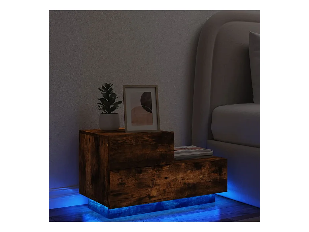 Bishop Table de chevet avec lumières LED chêne fumé 50x40x45 cm