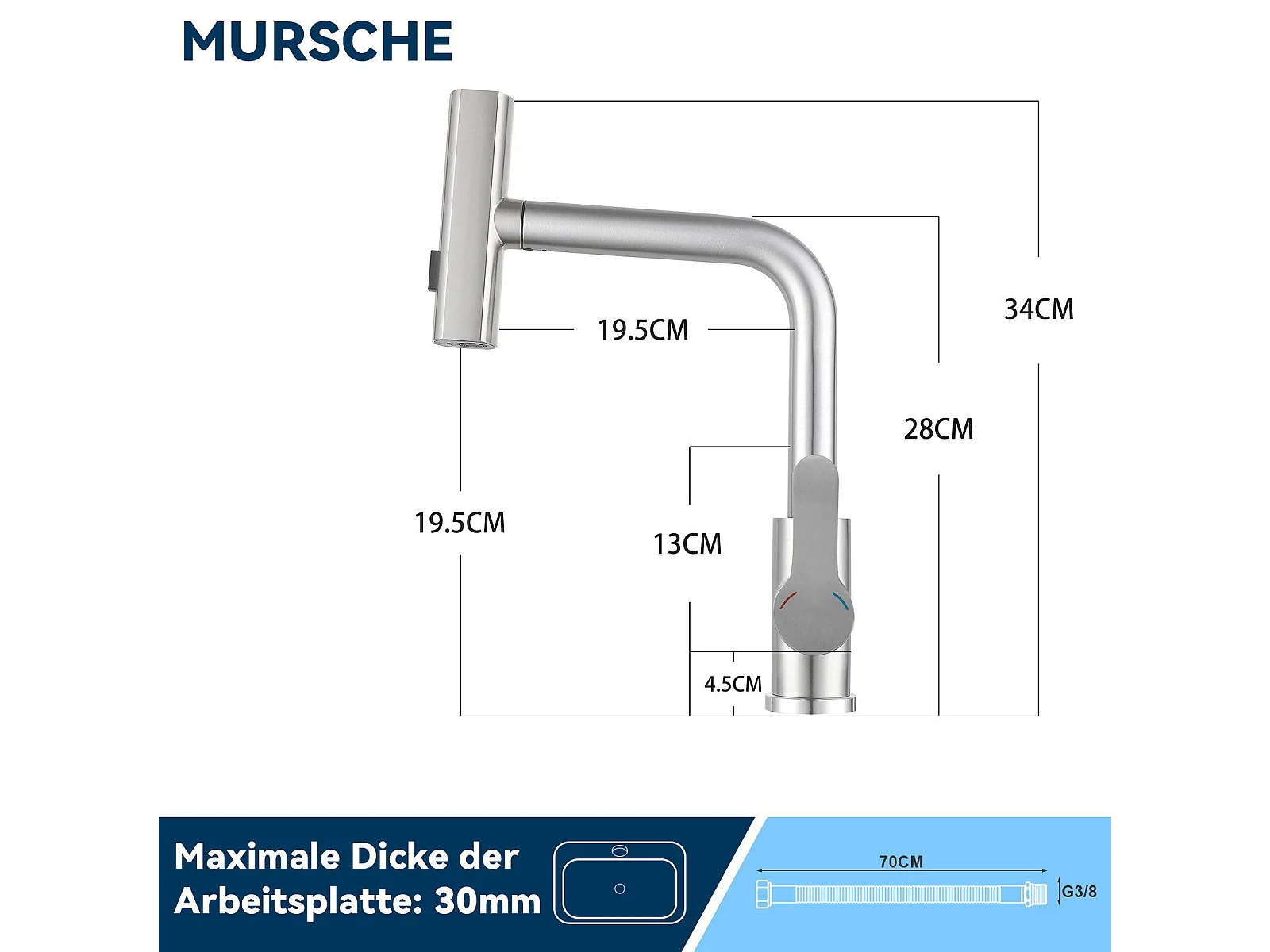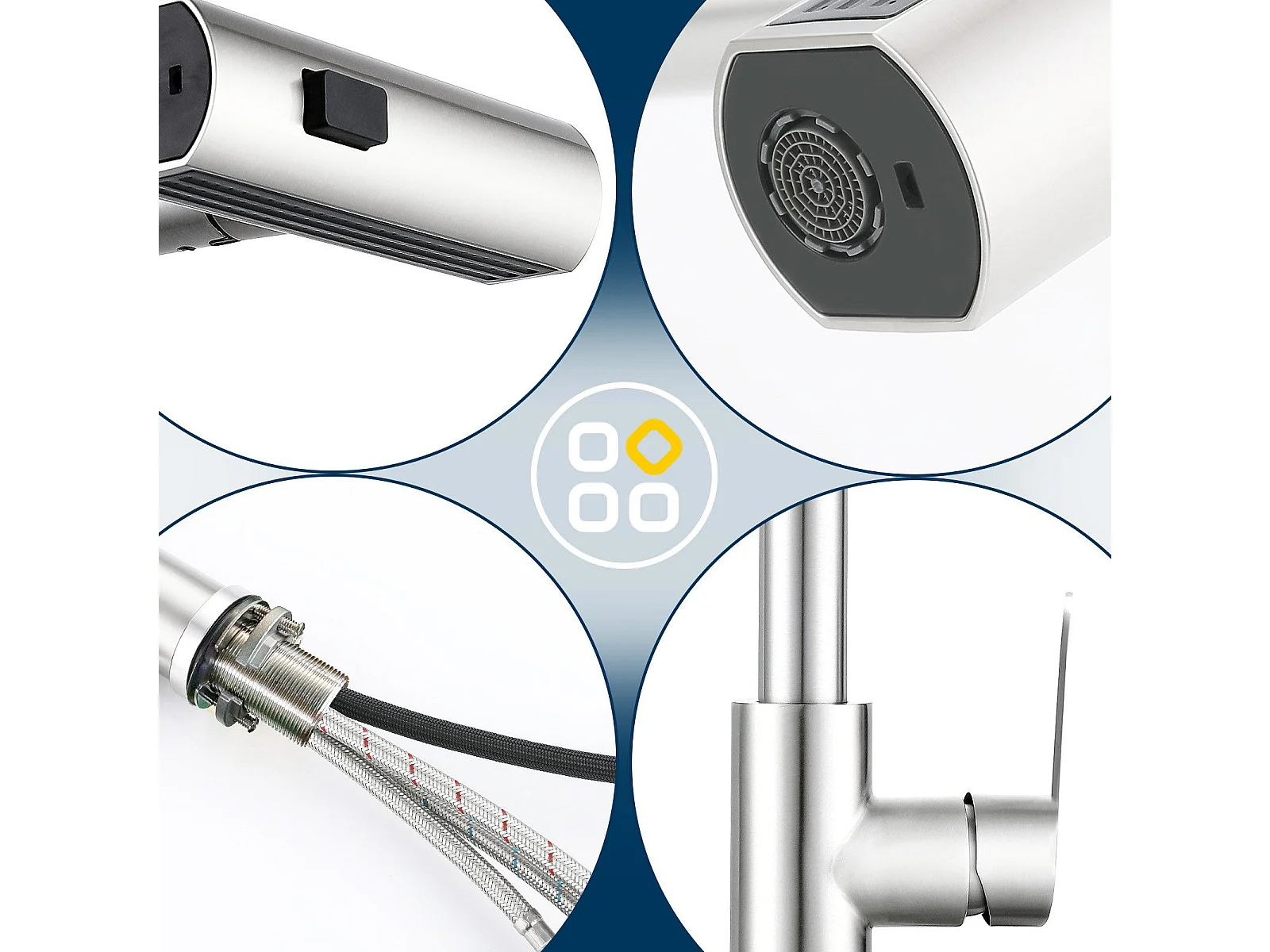 Mélangeur de Cuisine avec Douchette 360°, Argent