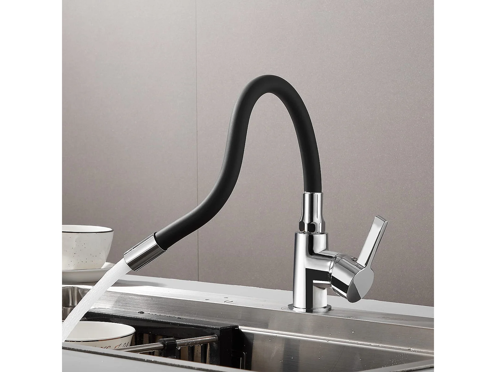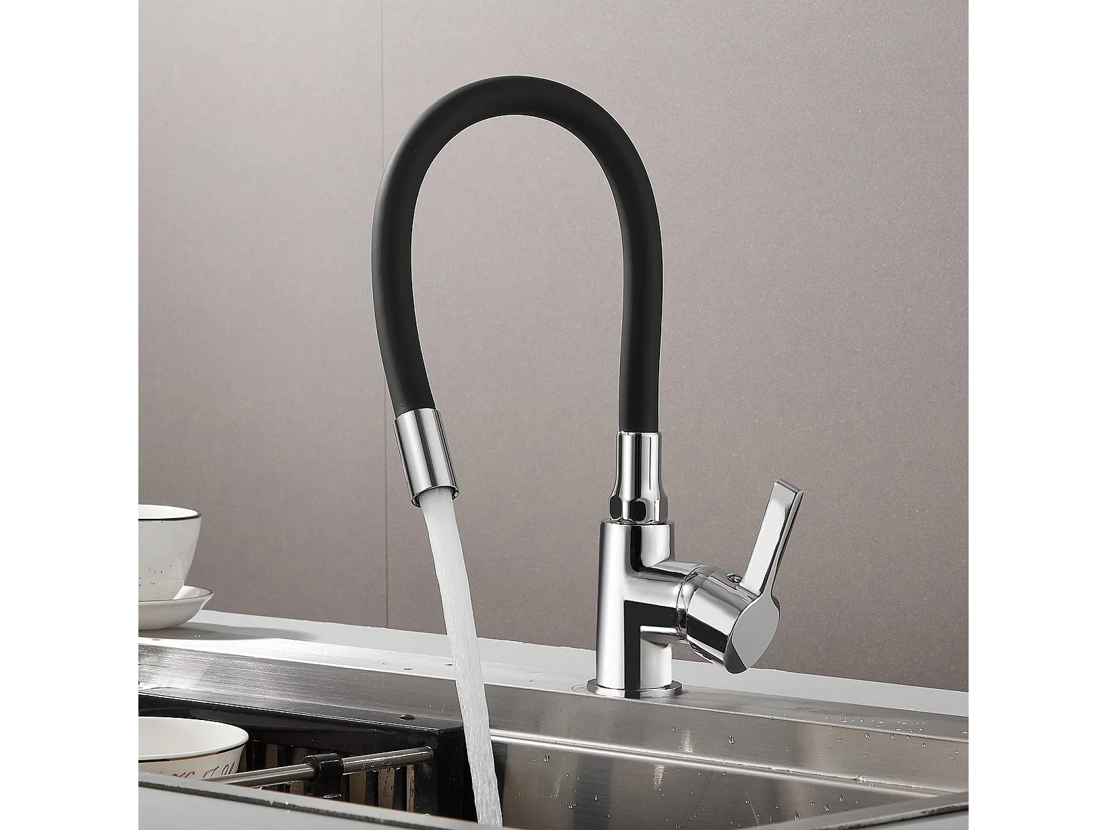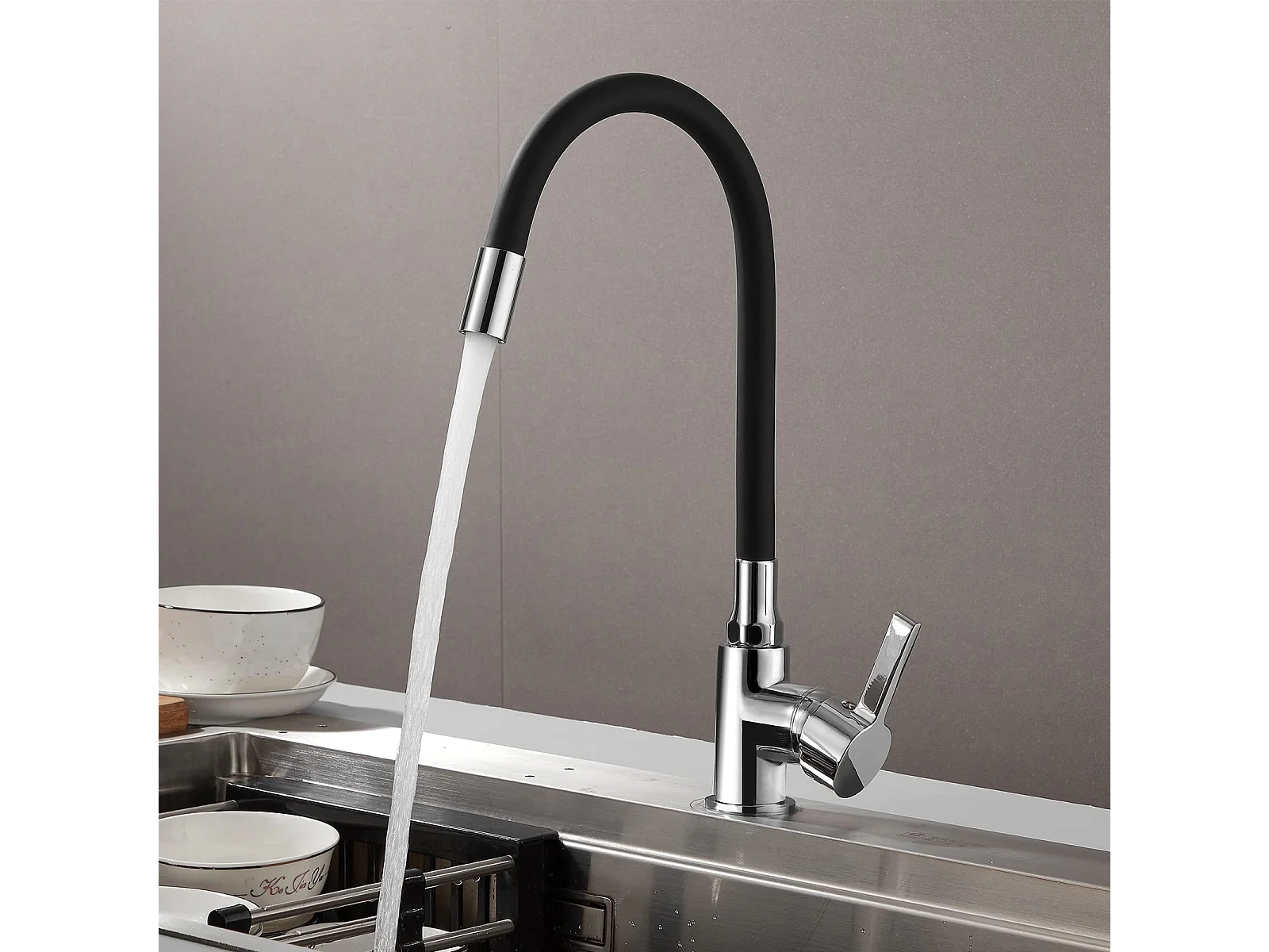 Robinet Cuisine Flexible Bec Haut Orientable Librement Mitigeur Évier Flexible Laiton Chromé et Noir Robinet Evier Monotrou Eau Chaude Froide