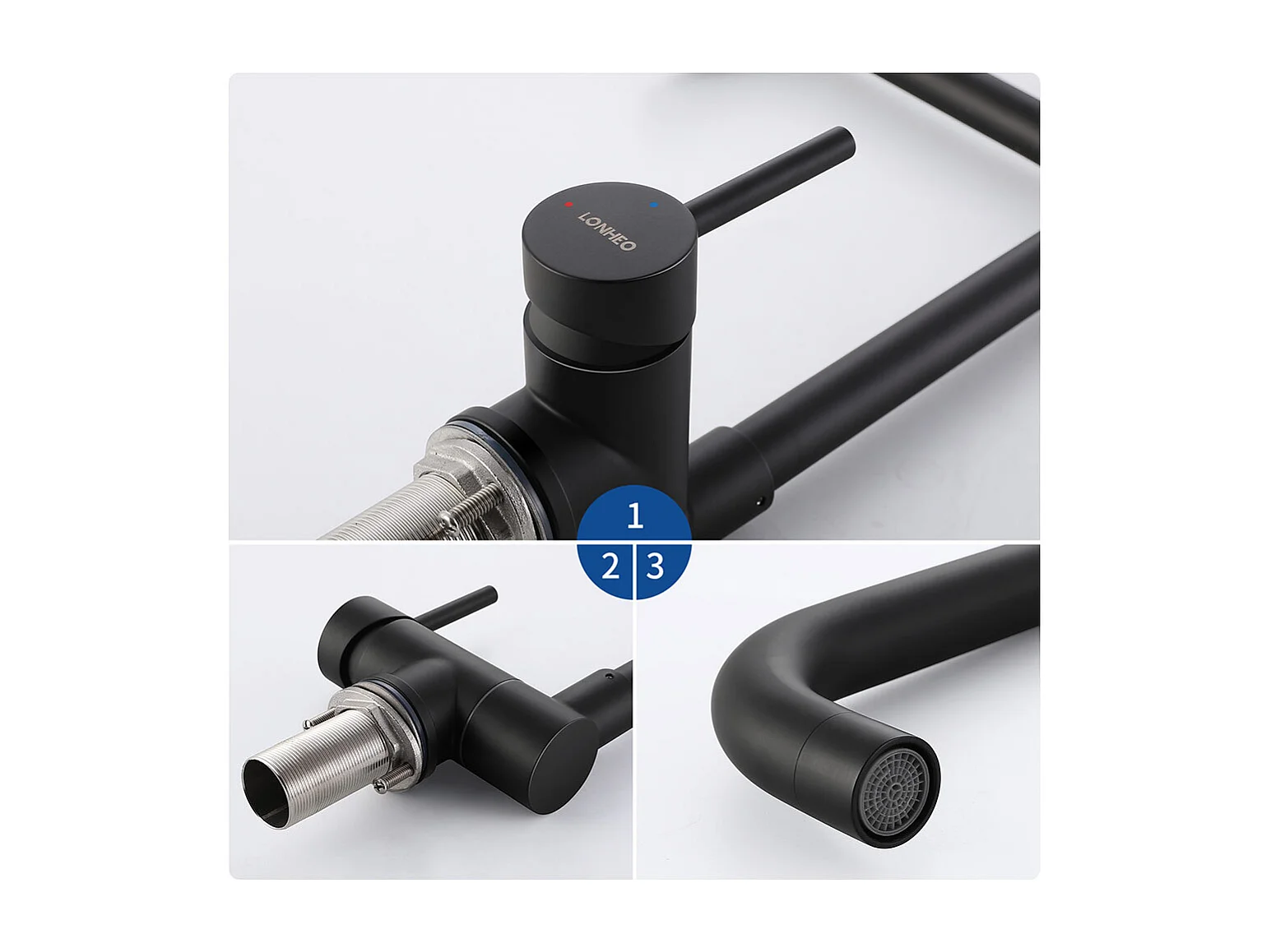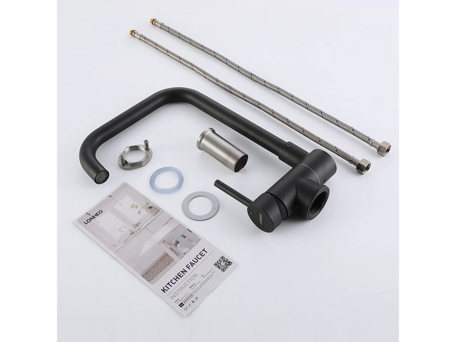 Lonheo Max Mitigeur Cuisine Rabattable Noir,Robinet Cuisine Pliable Contre Fenêtre en Acier Inox 304, Robinetterie Cuisine Pivotant à 360°,EU Modèle