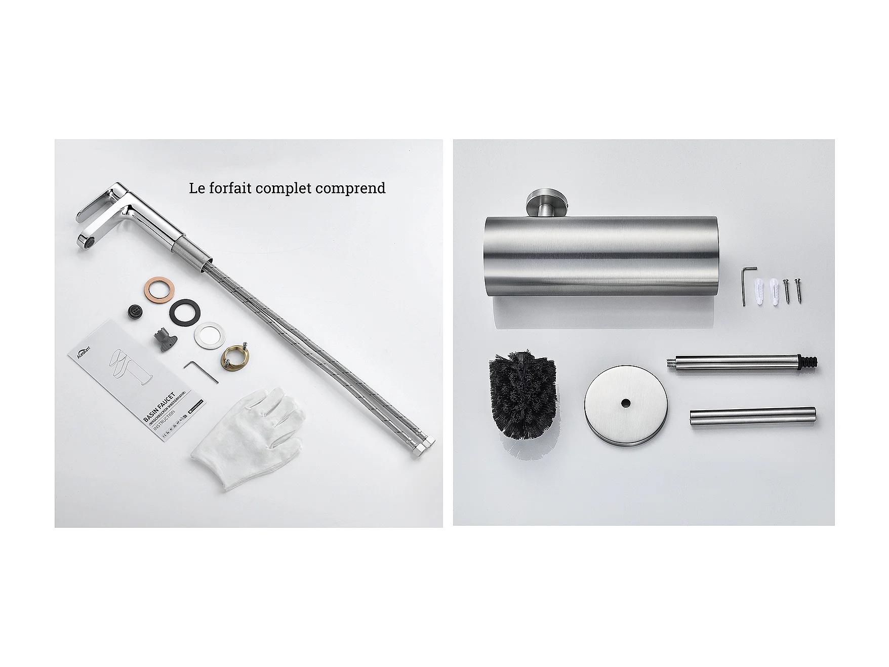 Robinet Salle Bain Moderne, Mitigeur Lavabo,Finition or Rose,Chromé+Porte Brosse Toilette Acier Inoxydable Brosse WC Mural