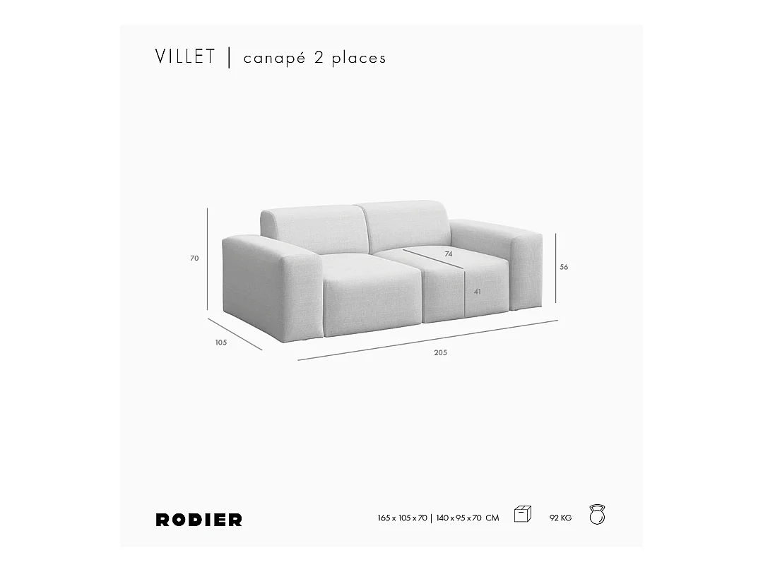 Rodier Canapé 2 places sans accoudoirs Mirel crème