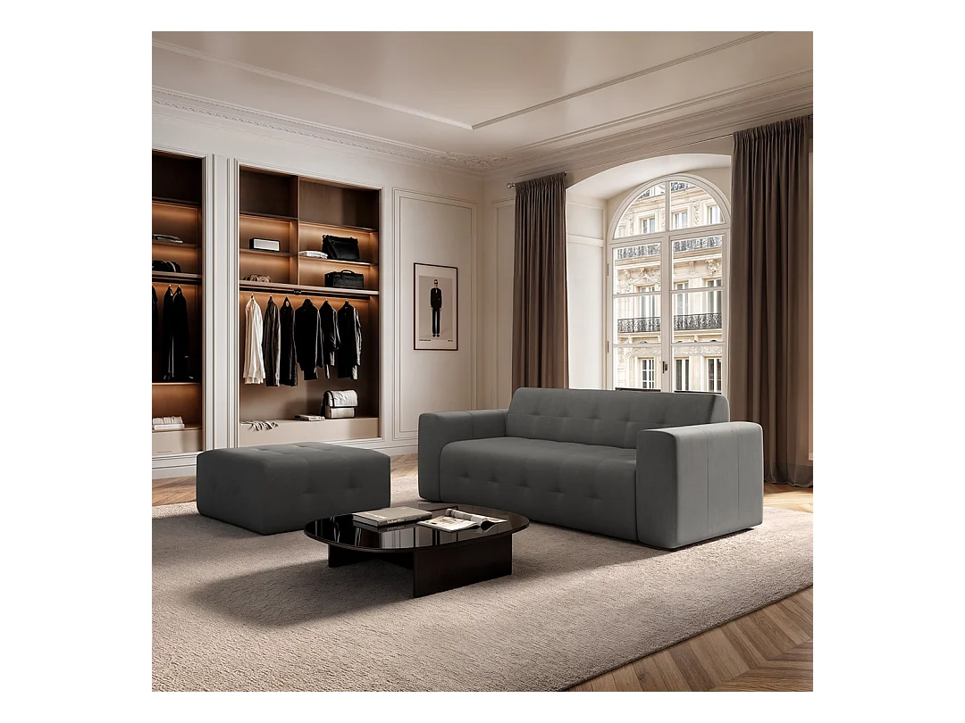 CANAPE 3 PLACES Pedro sans fonction sommeil gris foncé
