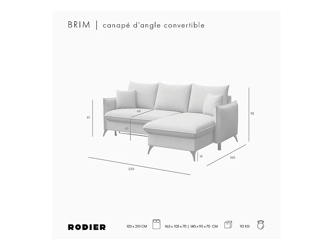 Rodier Canapé d'angle droit convertible Brim gris