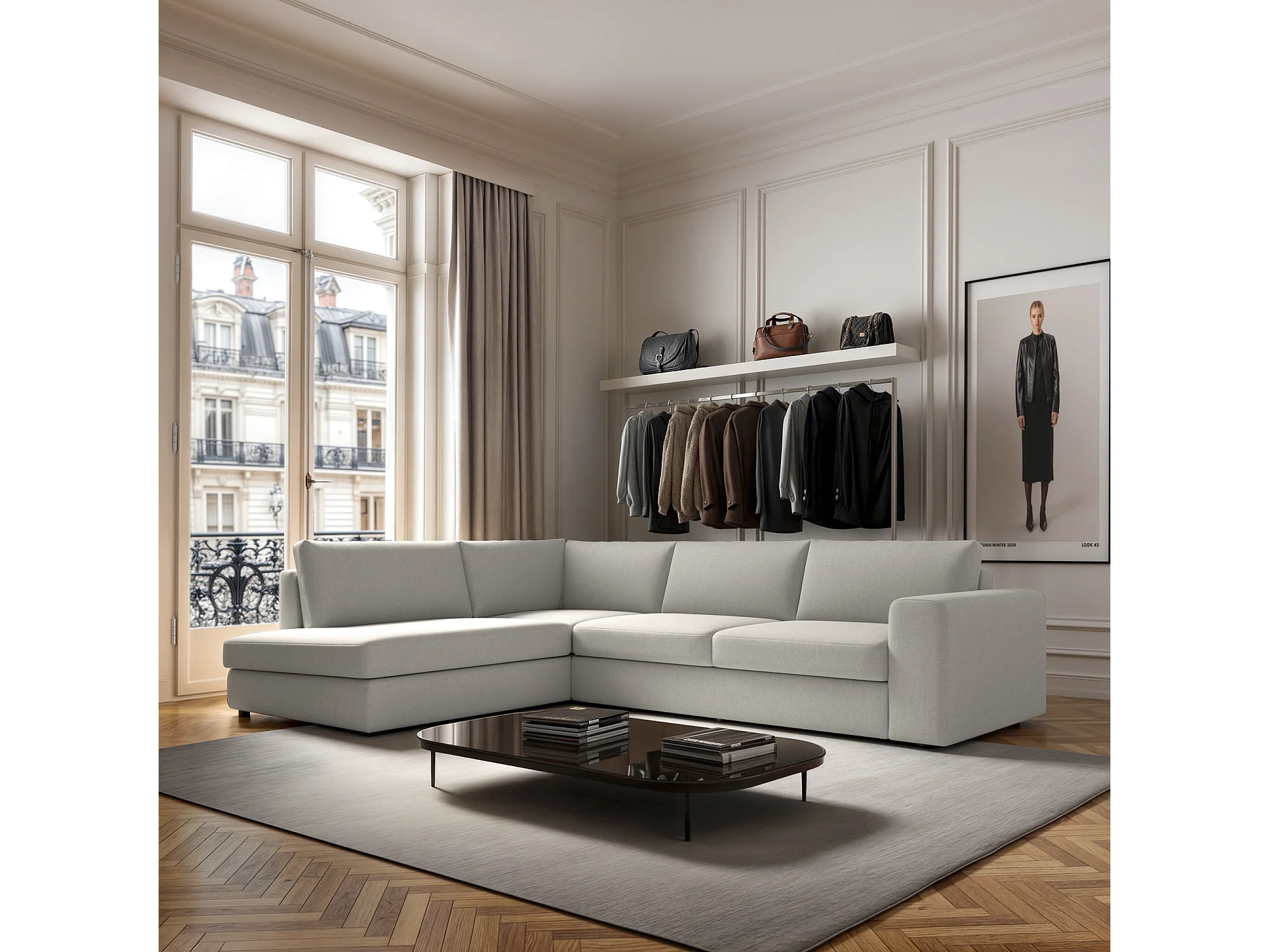 Canapé d'angle Eckouch salon NIMES tissu Verita Beige Gauche