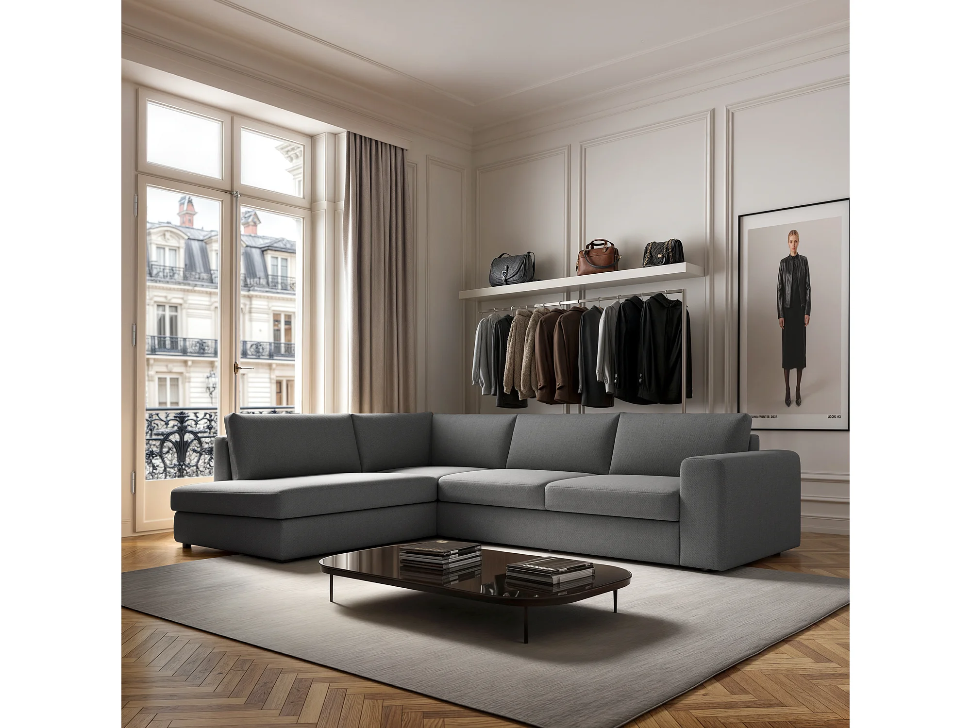 Rodier Grand canapé d'angle droit Baga gris