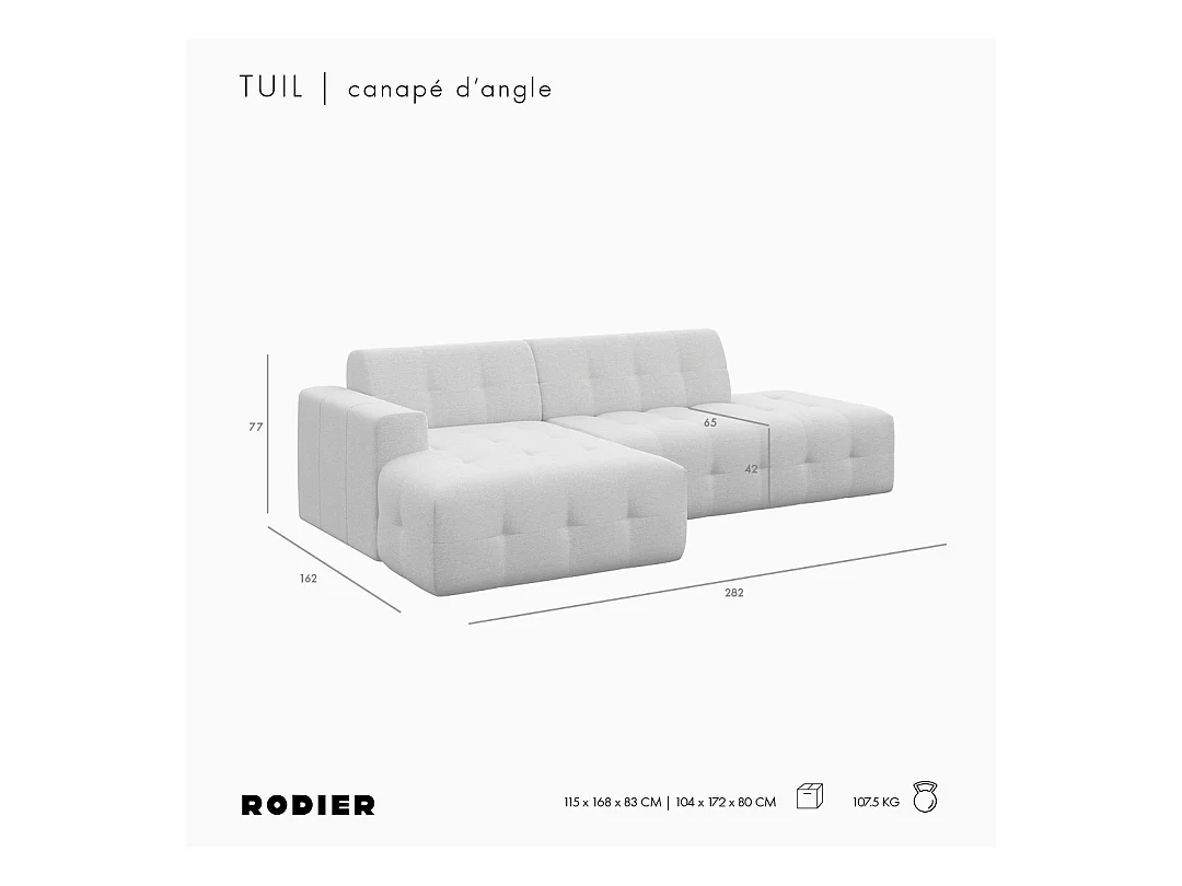 Rodier Canapé d'angle gauche Tuil gris argenté