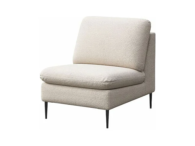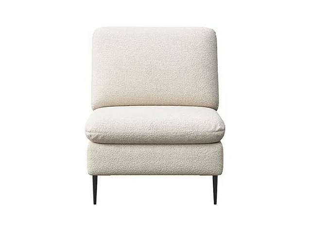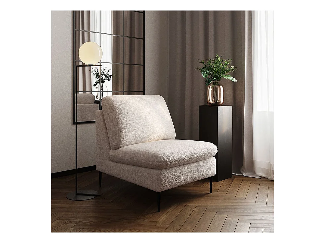 Fauteuil lounge GLASGOW – Tissu bouclette blanc & piétement en métal noir
