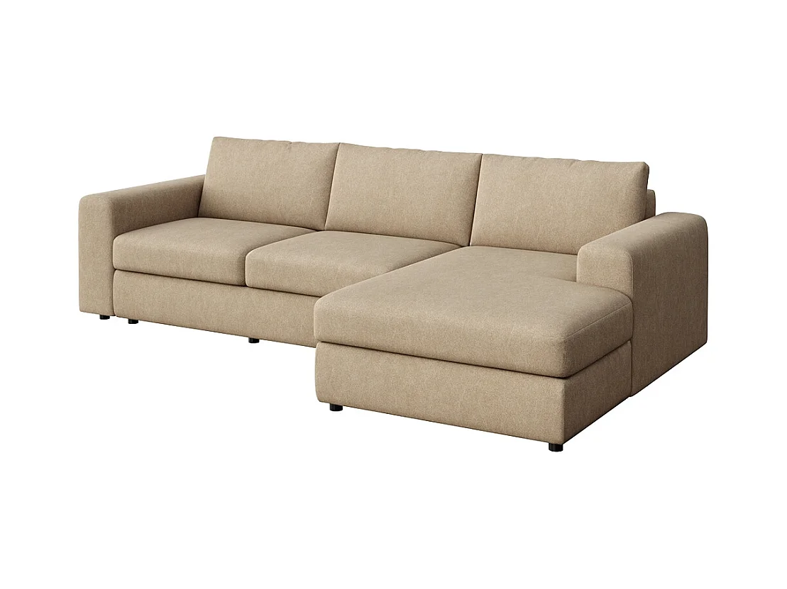 Chaise longue côté droit PESSAC Velours Taupe avec rangement