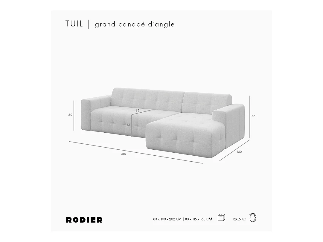 Rodier Grand canapé d'angle droit Tuil beige foncé