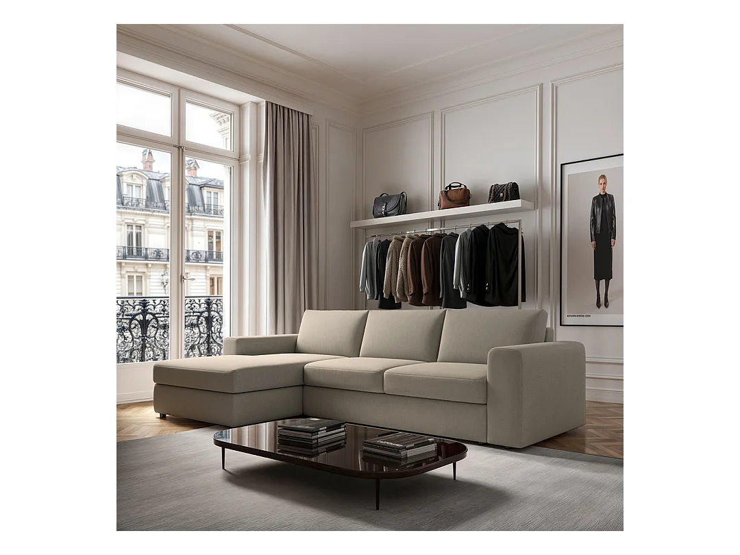 Rodier Grand Canapé d'angle gauche Tuil beige foncé