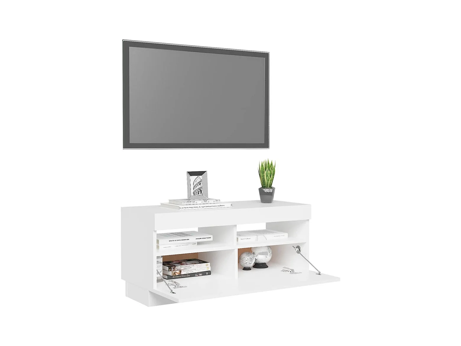Roelant Meuble TV avec lumières LED blanc brillant 100x35x40 cm