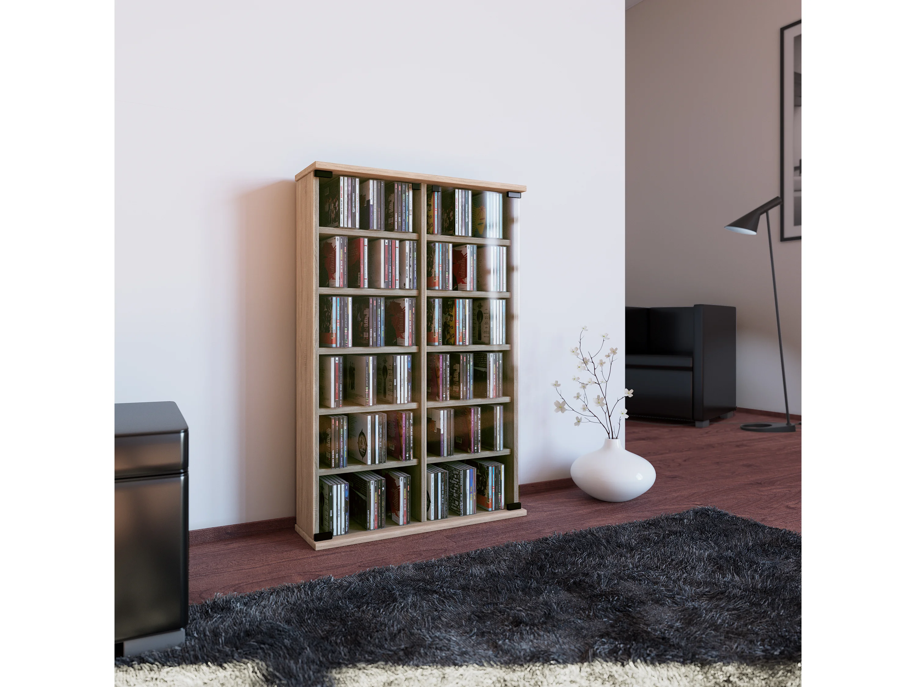 CD / DVD Media Shelf Roma Sonoma oak (Sägerau) H. 92 x W. 60 x D. 18 cm