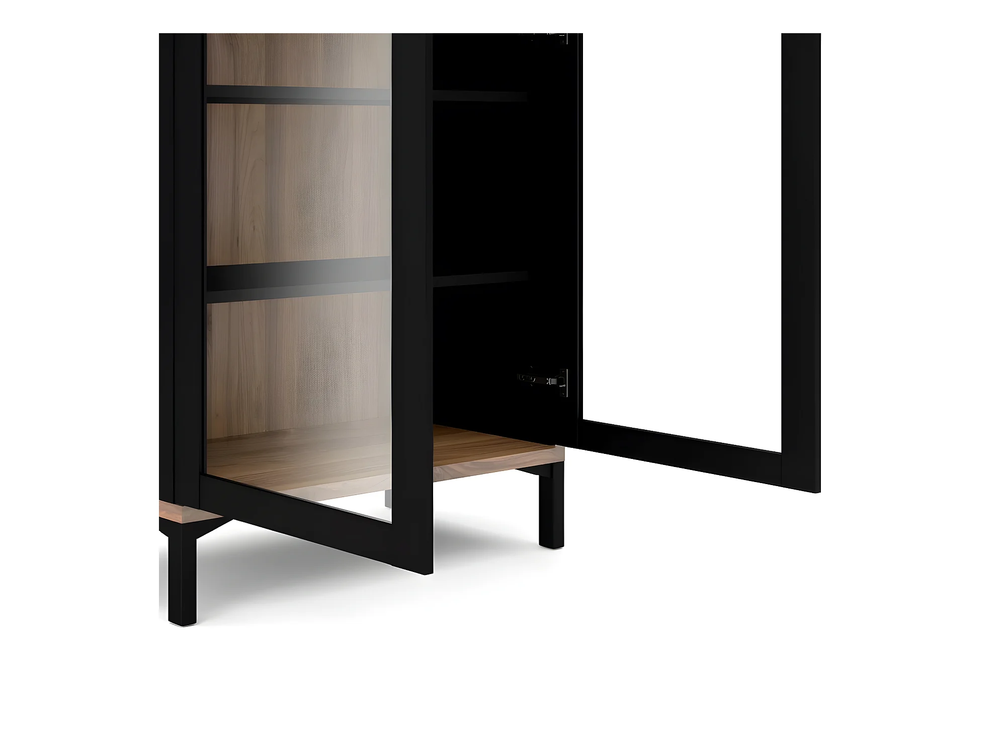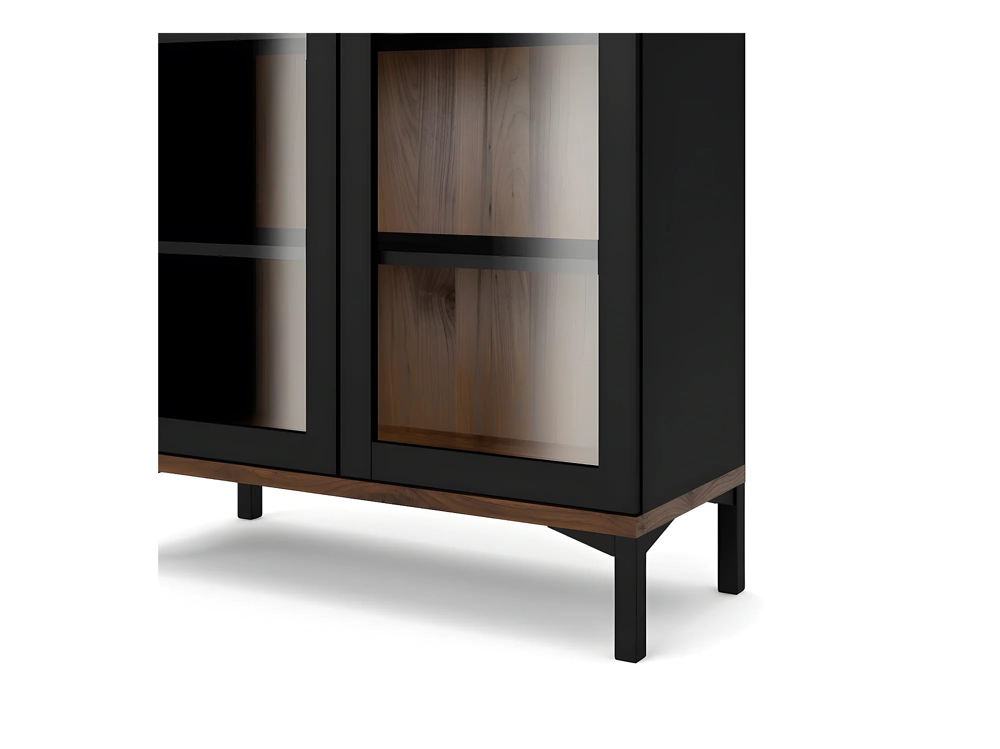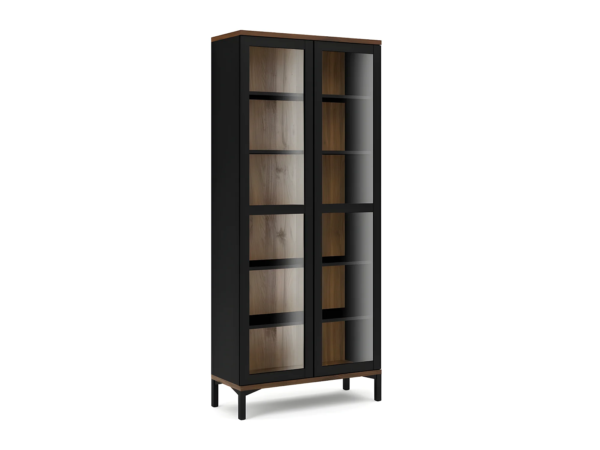 Rosa Armoire vitrine avec pieds noirs et en finitionnoyer.