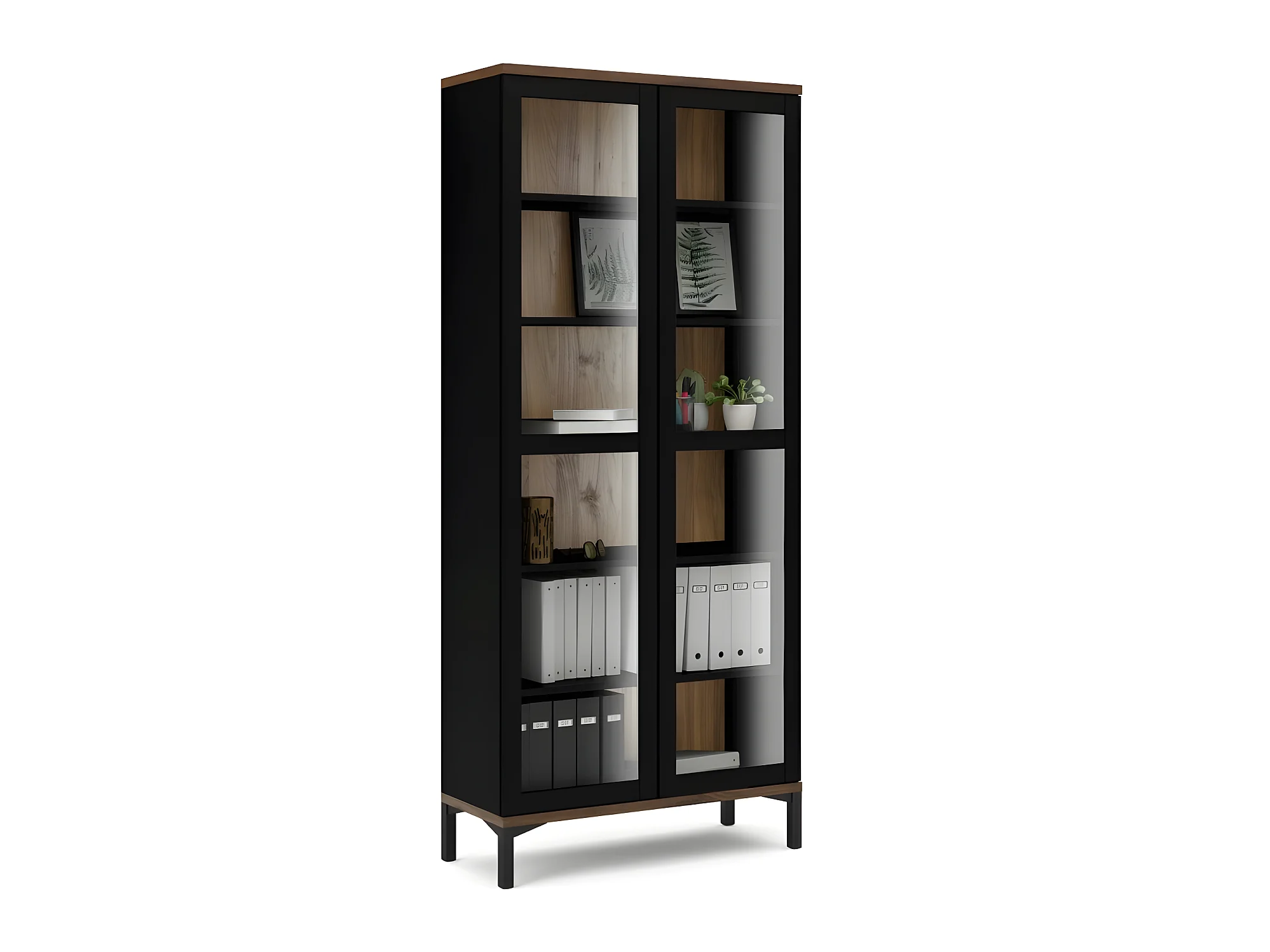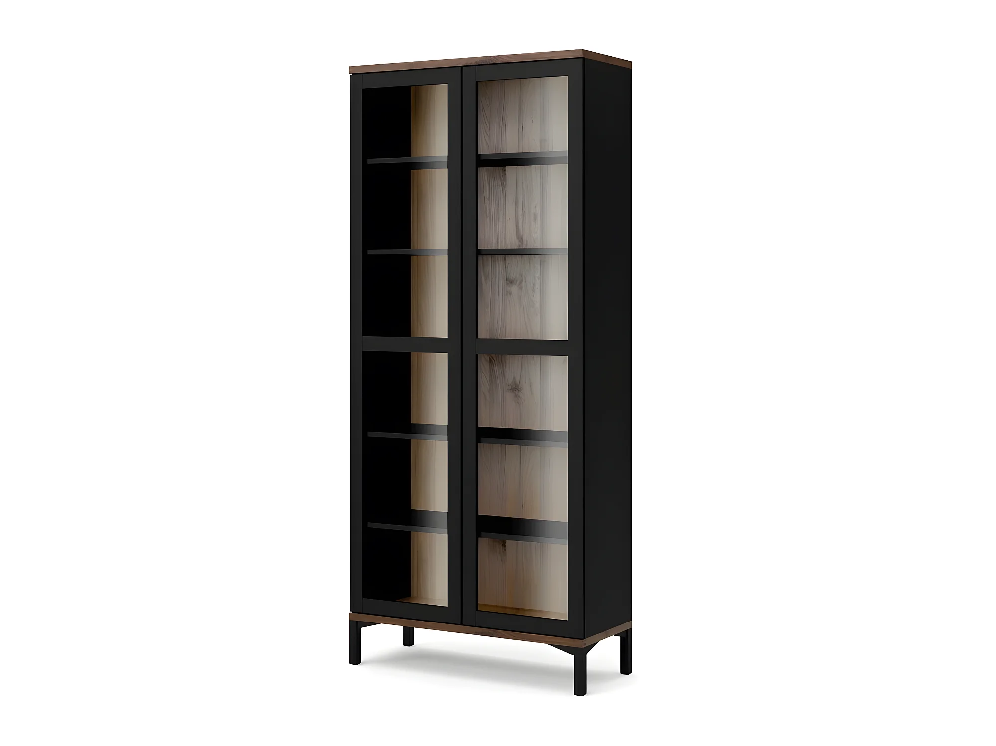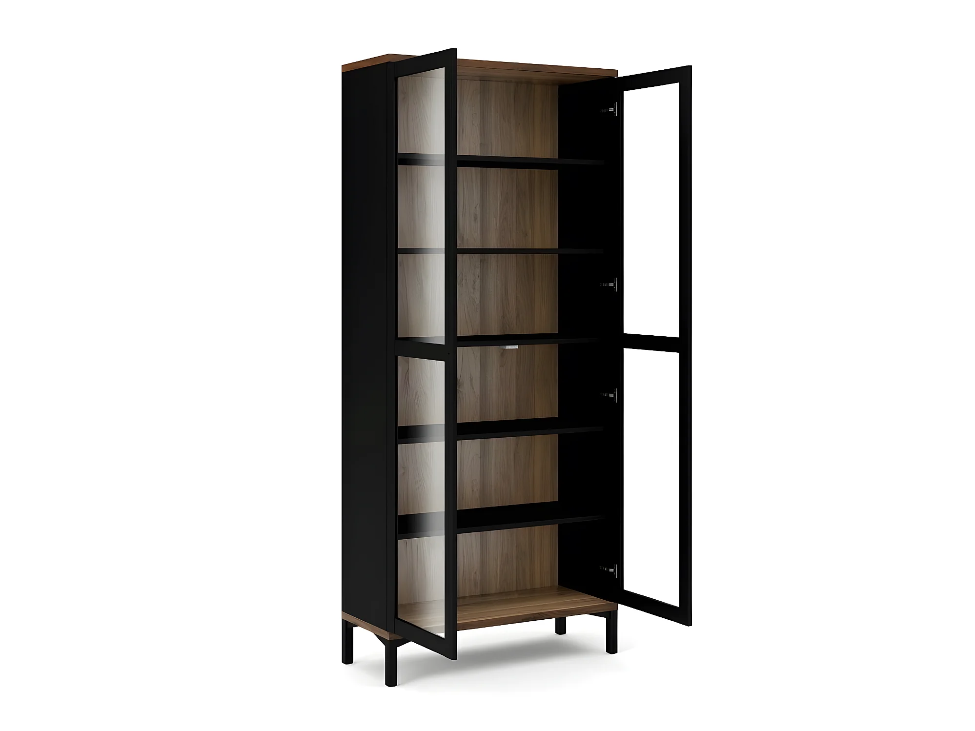 Rosa Armoire vitrine avec pieds noirs et en finitionnoyer.