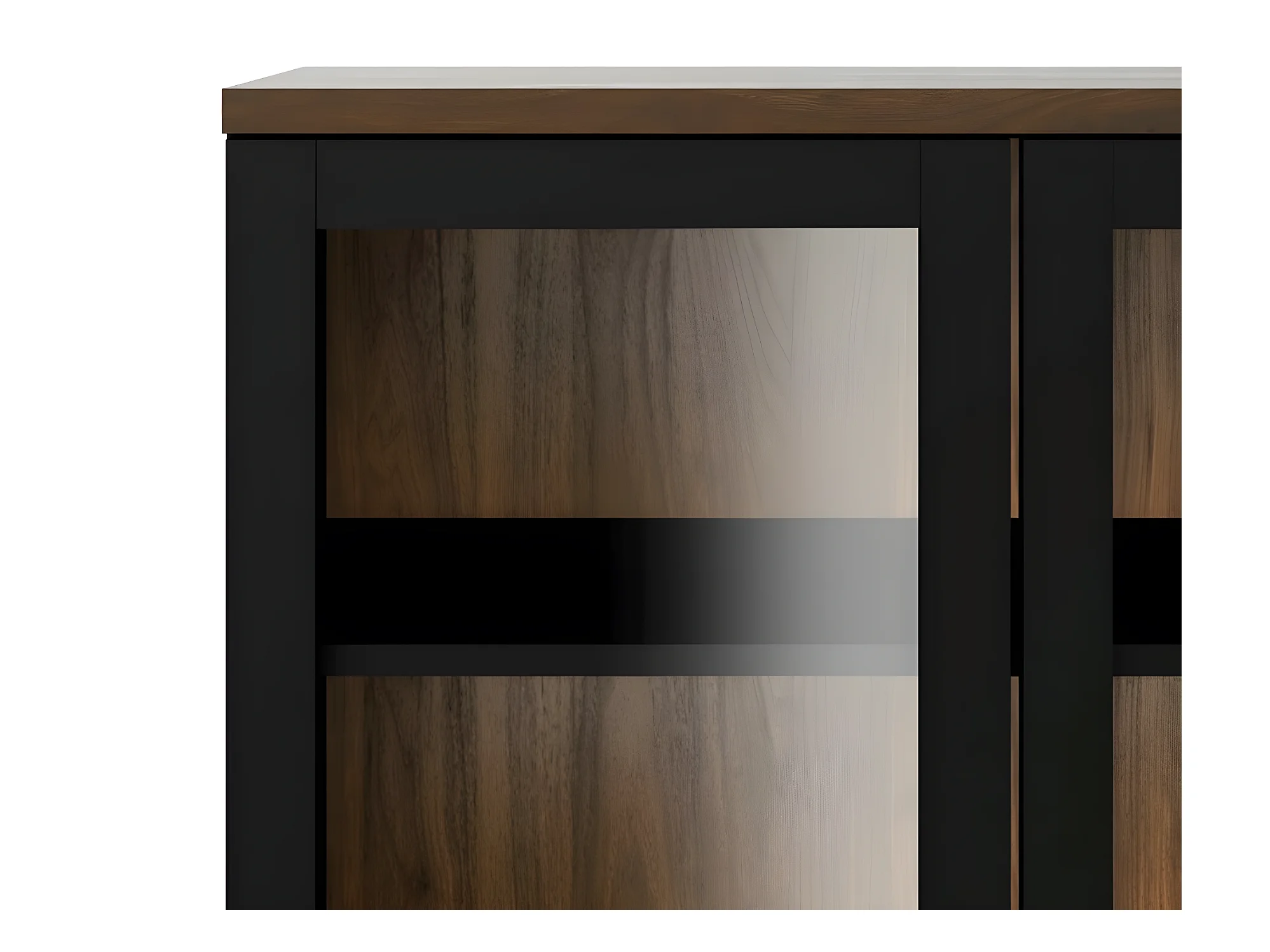 Rye Buffet 2 portes, 2 tiroirs, noir mat, finition noyer.