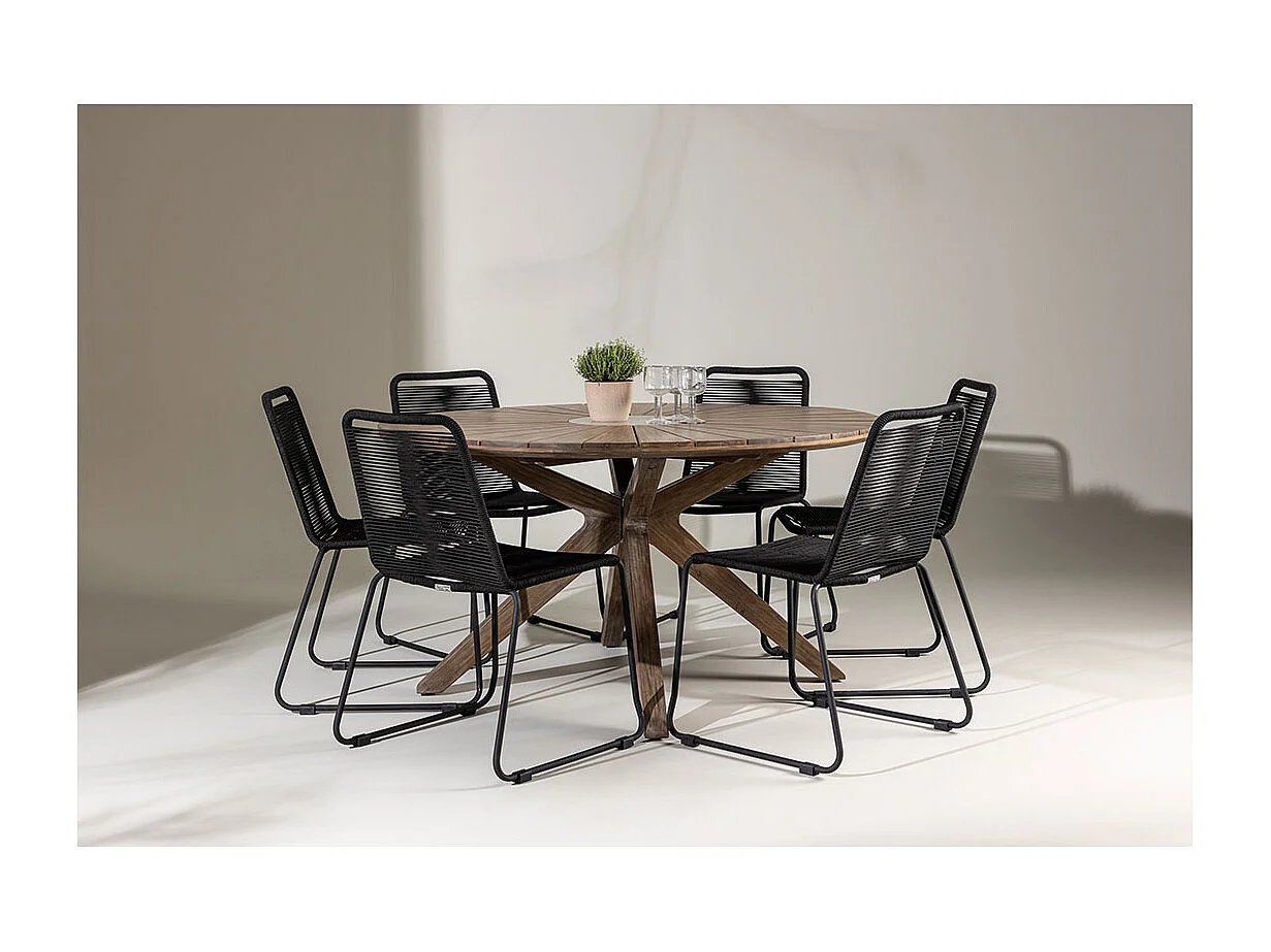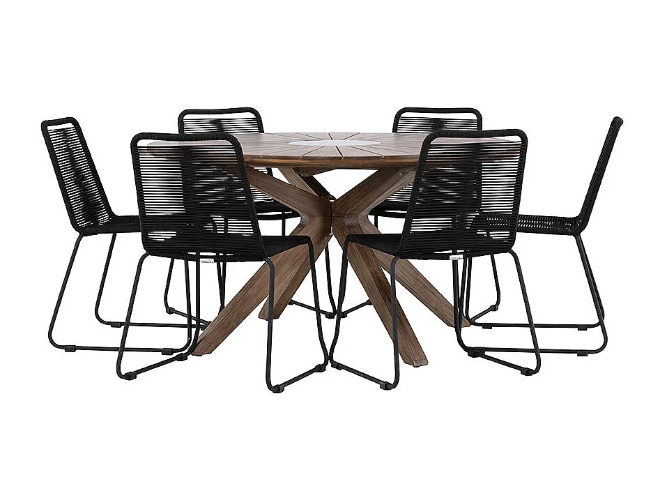 Rosario set de jardin table Ø140cm brun, 6 chaises noires.