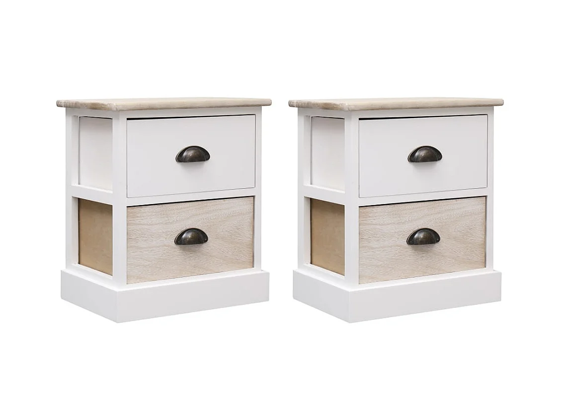 Rosolini 2 pcs Tables de chevet Blanc et l 38x28x45 cm Paulownia