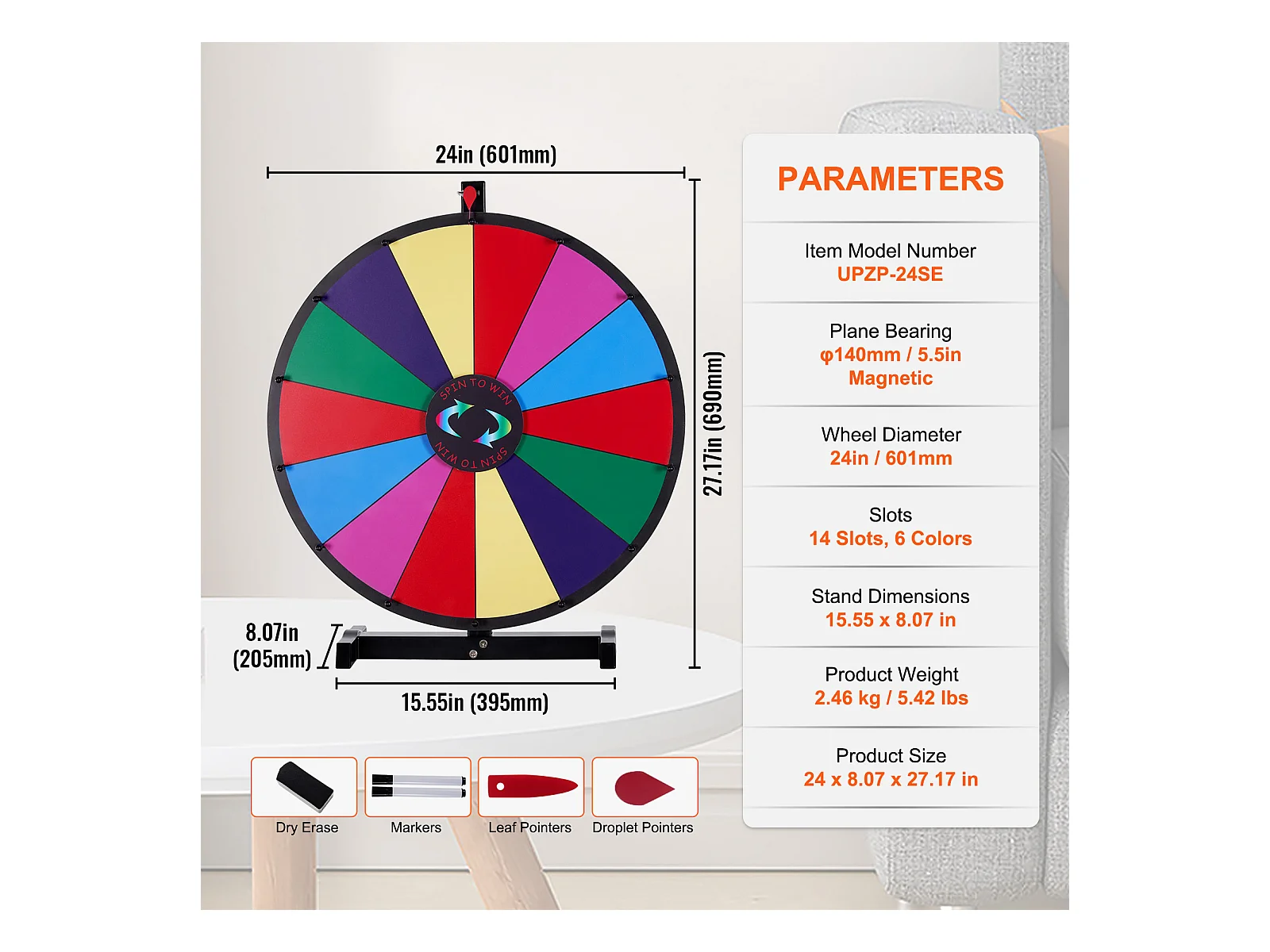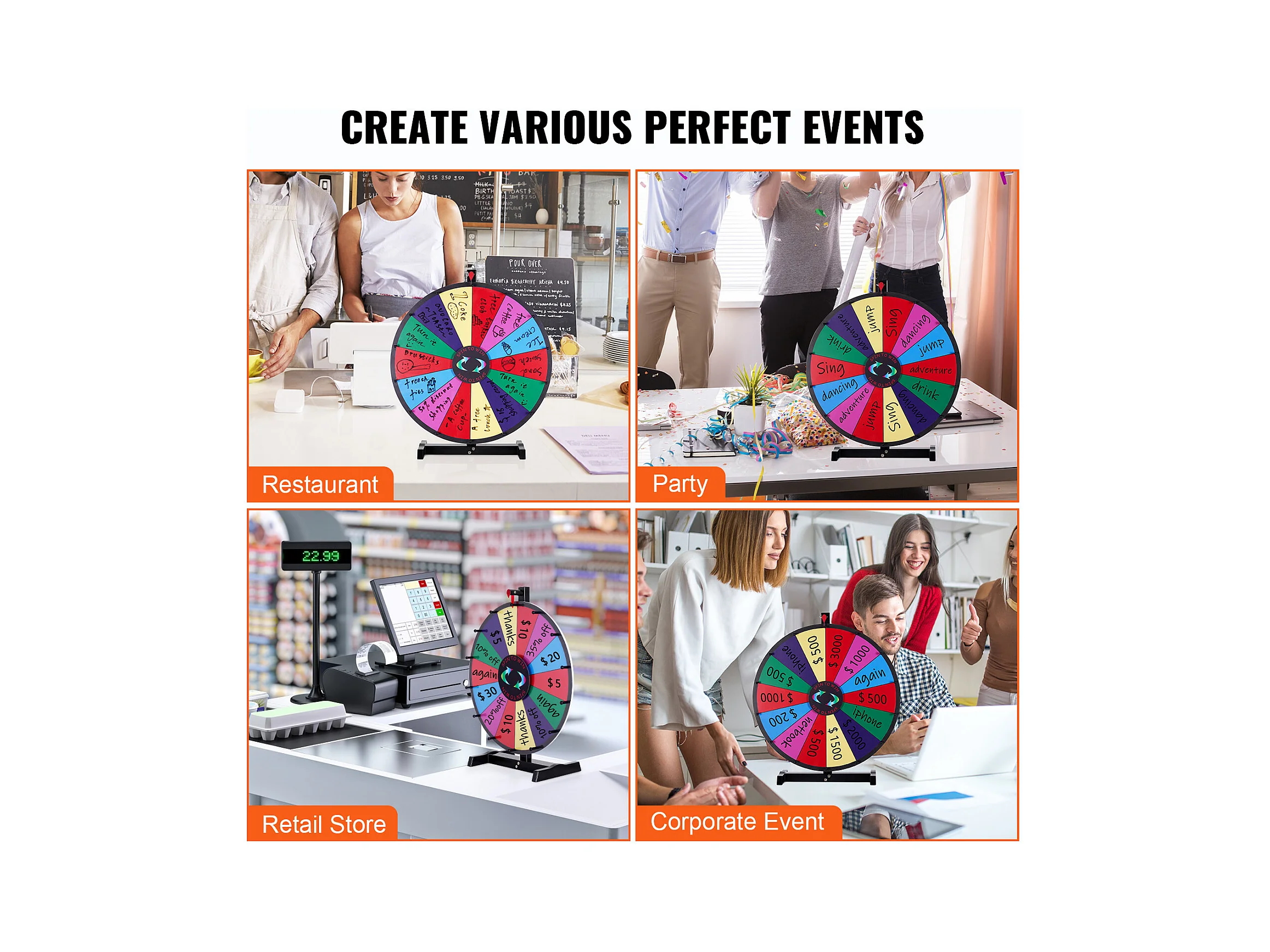 Roue de Prix Rotative, SucceBuy Roue de Prix Rotative 60 cm avec 14 Emplacements pour Table de Jeu pour Salon Professionnel et Carnaval