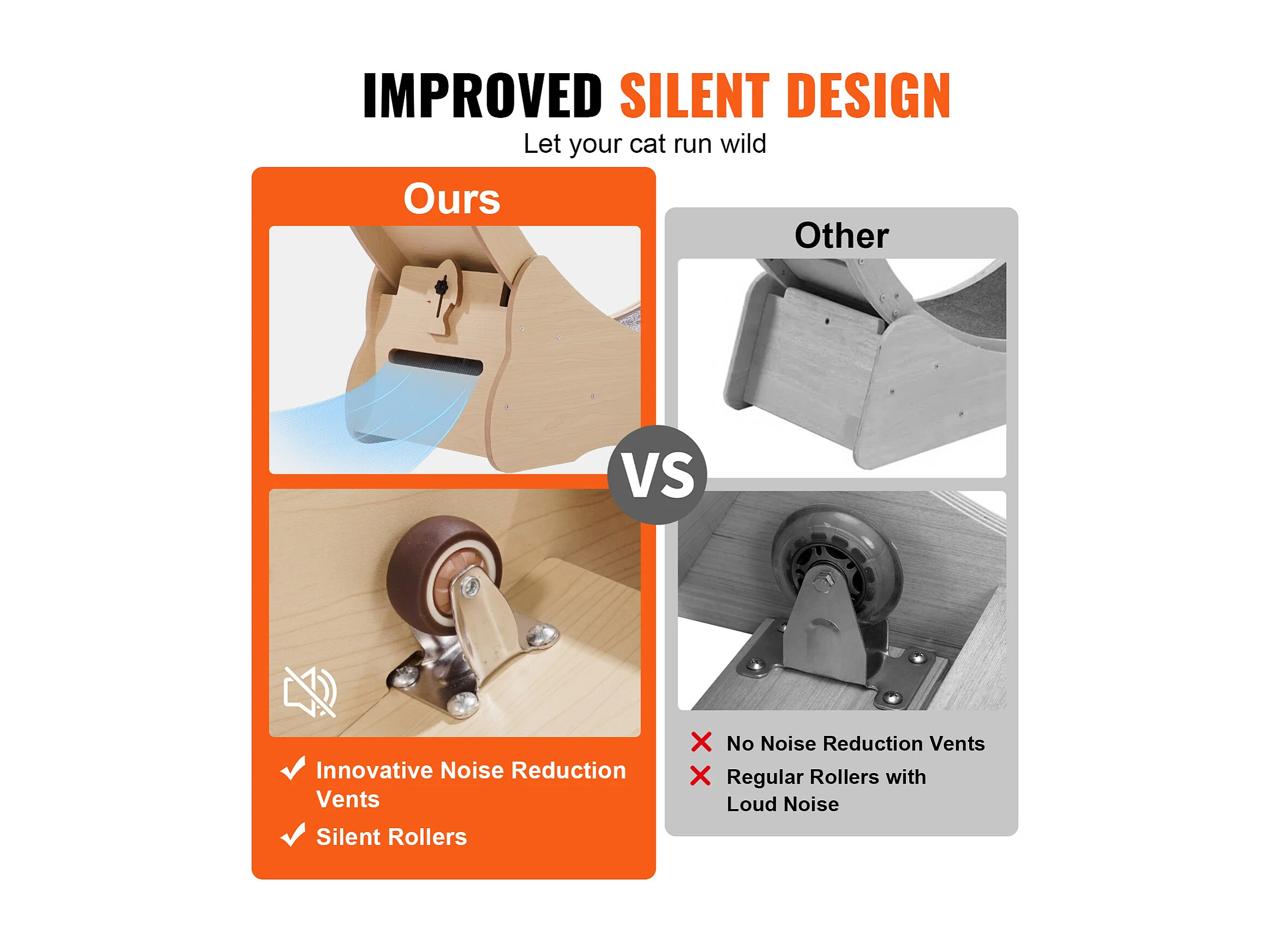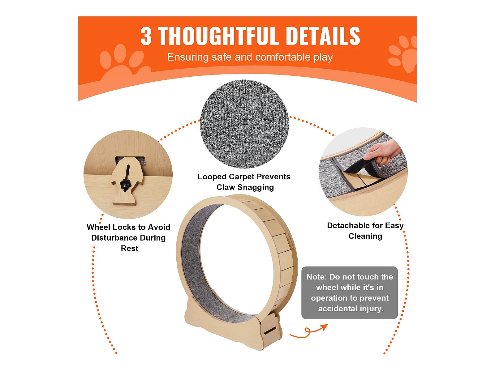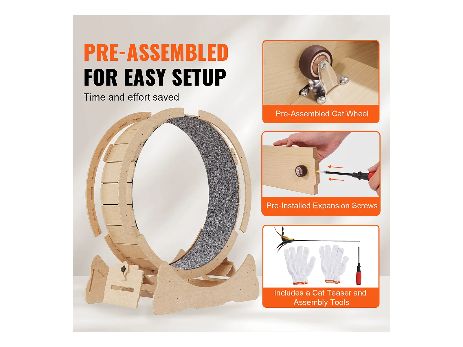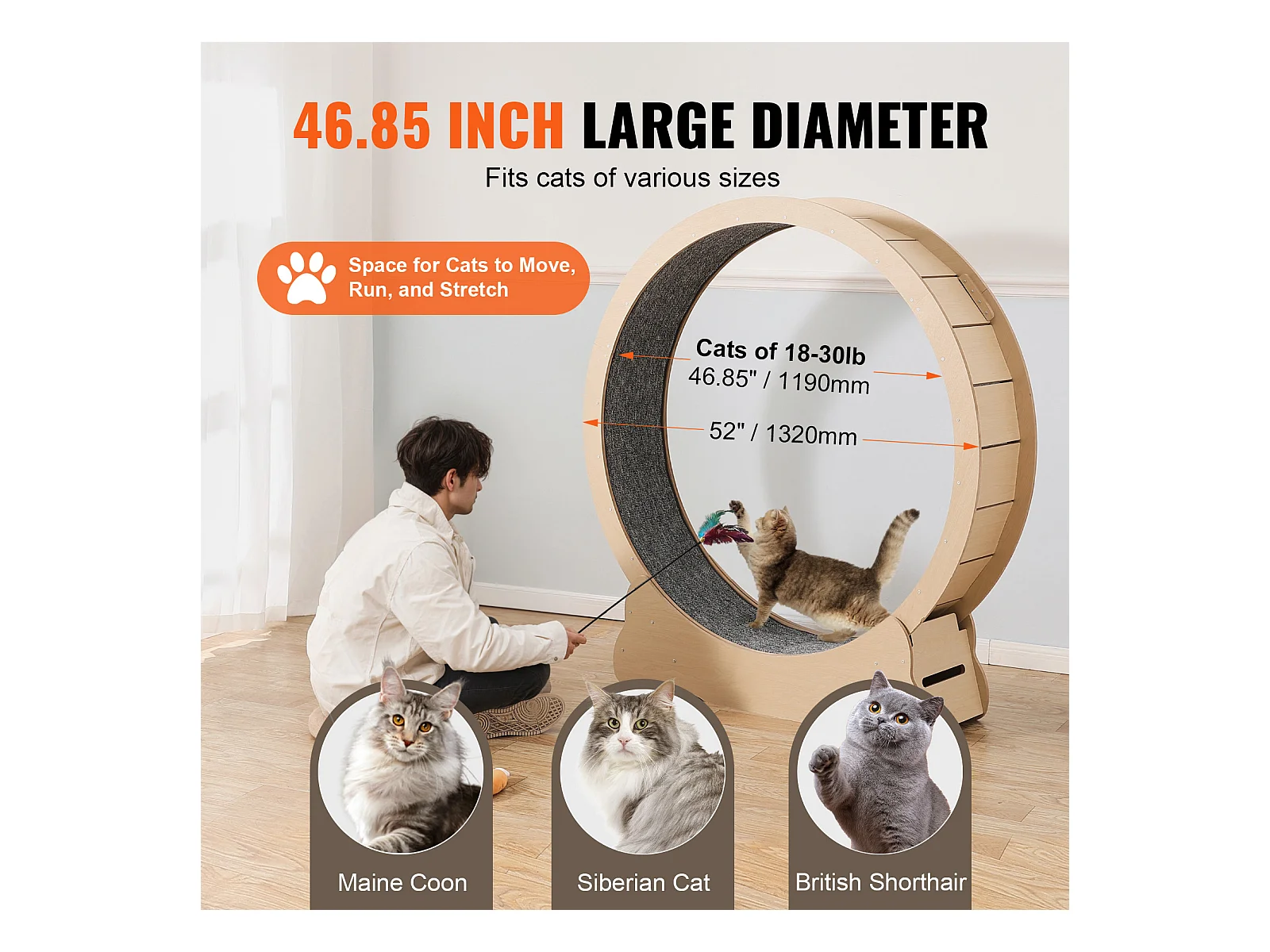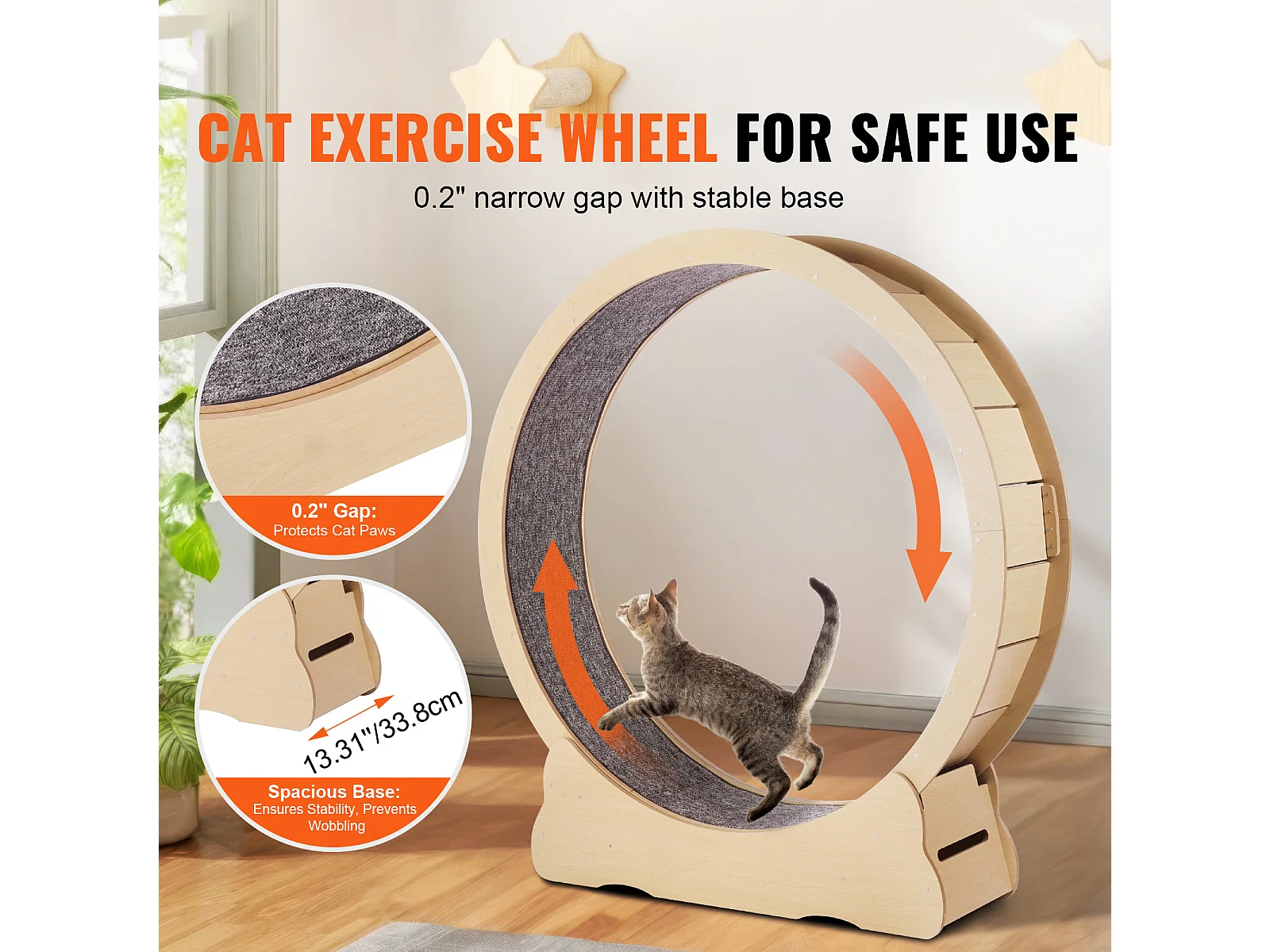 Roue d'Exercice Chat Grande en Bois SucceBuy, Roue de Tapis Roulant,132cm, Intérieur