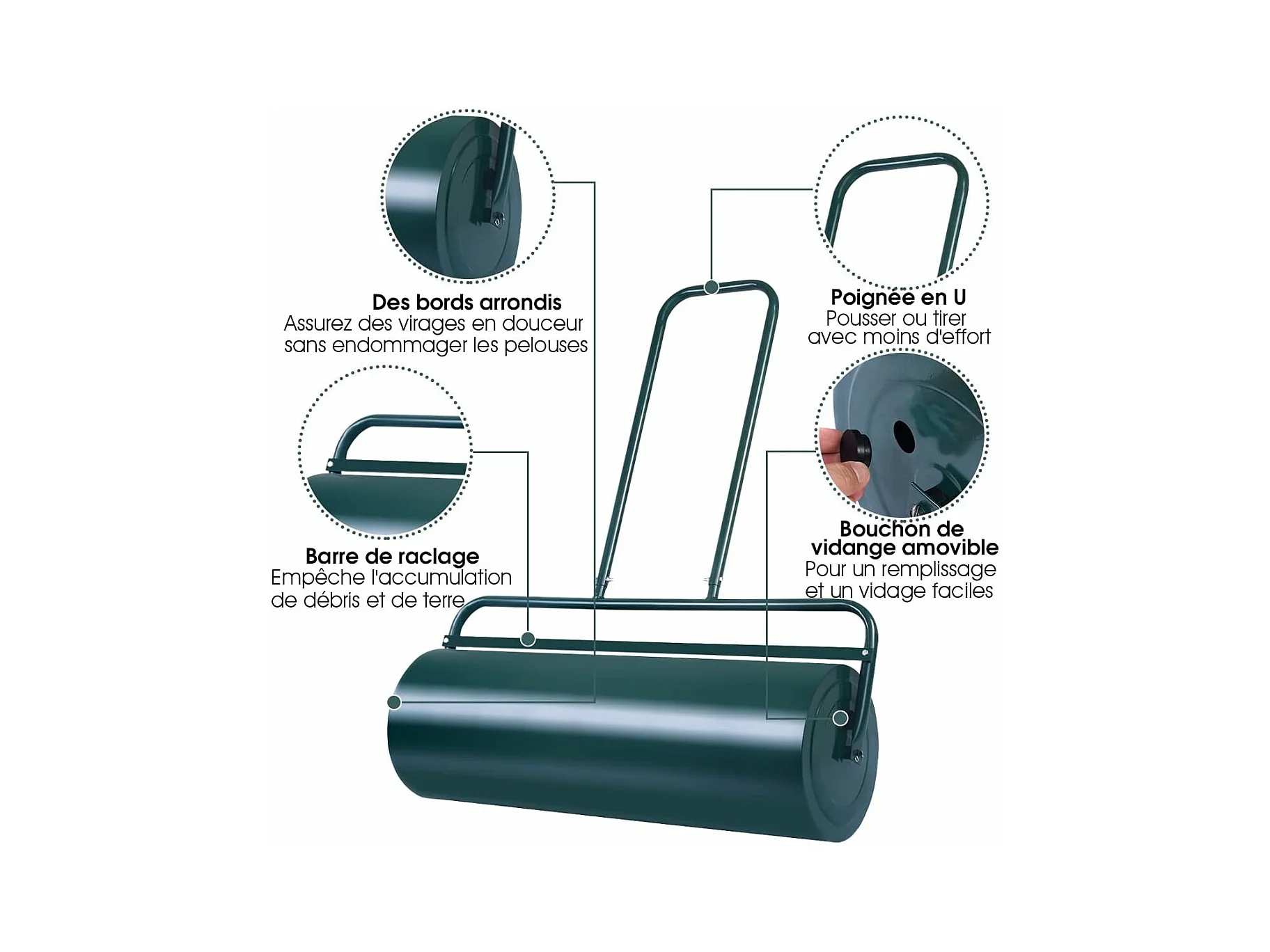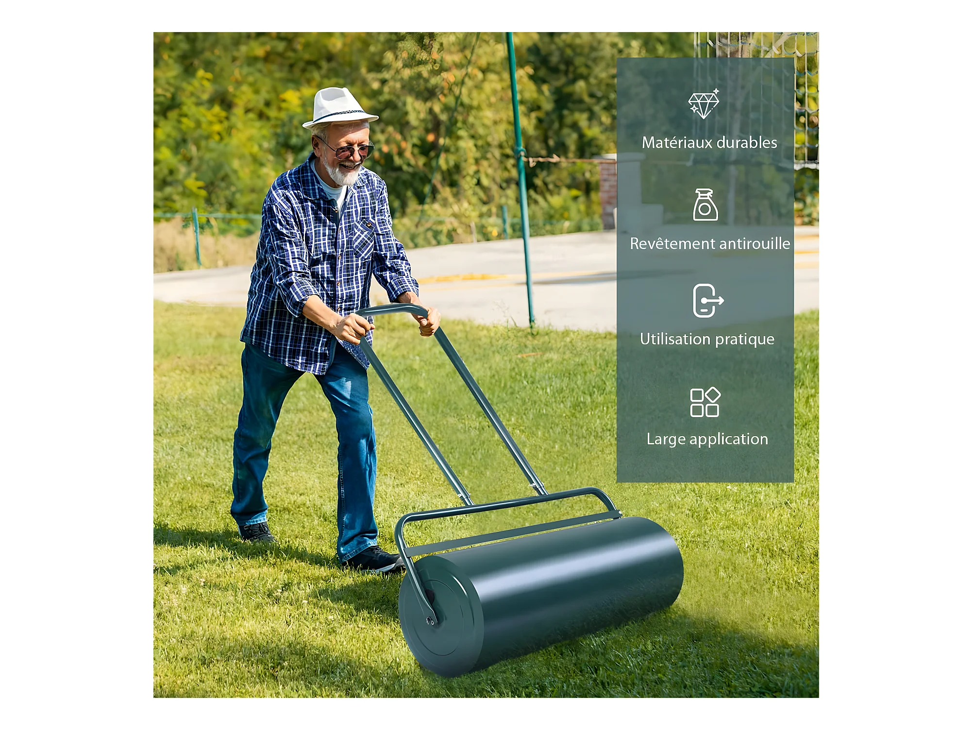 Rouleau à Gazon de Jardin avec Volume 63 L Ø du Rouleau : 30 CM Largeur 60 CM en Acier de Couleur Vert