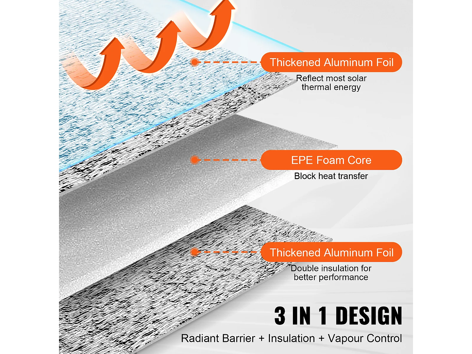 Rouleau Isolant Réfléchissant Double SucceBuy avec Noyau en Mousse et Barrière Radiante 122 CM x 762CM