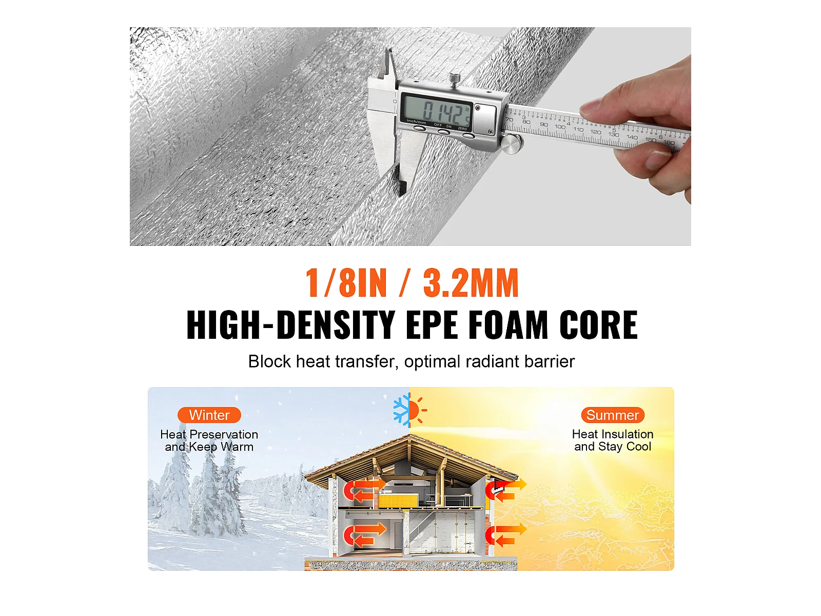 Rouleau Isolant Réfléchissant Double SucceBuy avec Noyau en Mousse et Barrière Radiante 122 CM x 3048 CM