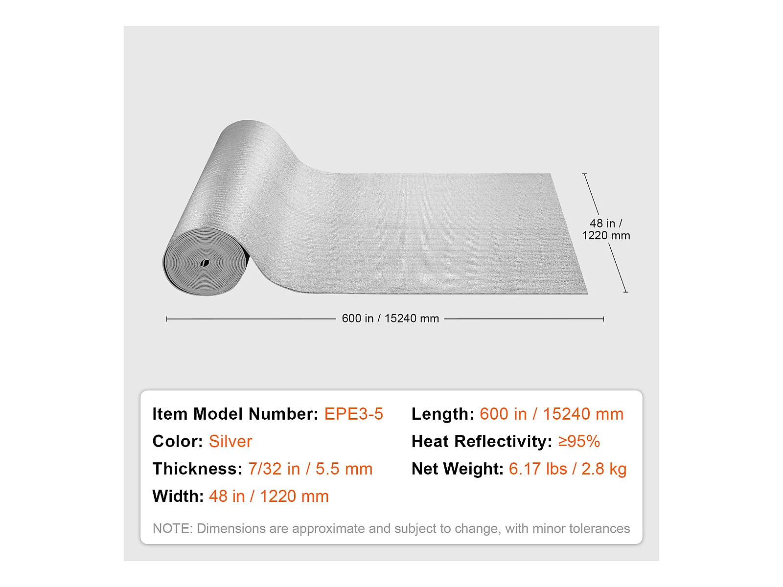 Rouleau Isolant Réfléchissant Double SucceBuy 122 CM x 762CM avec Noyau en Mousse Anti-Rayonnement