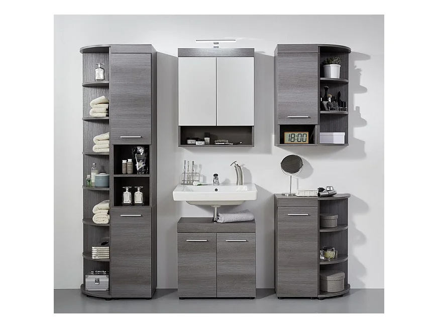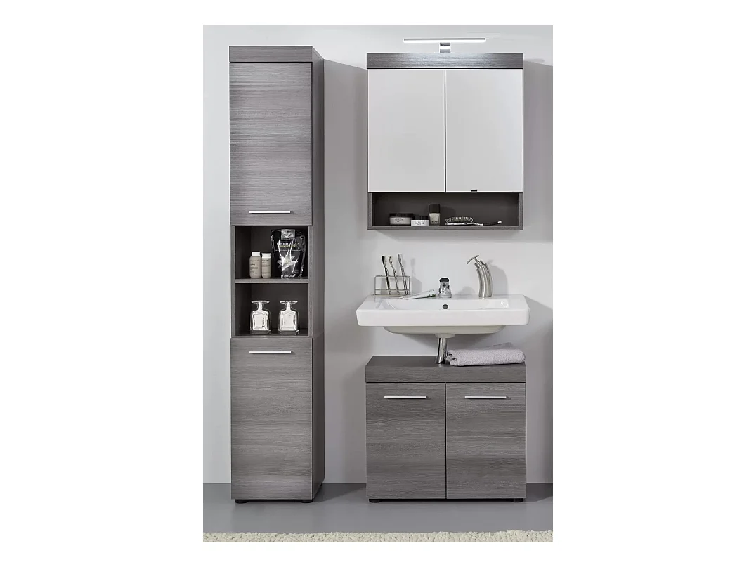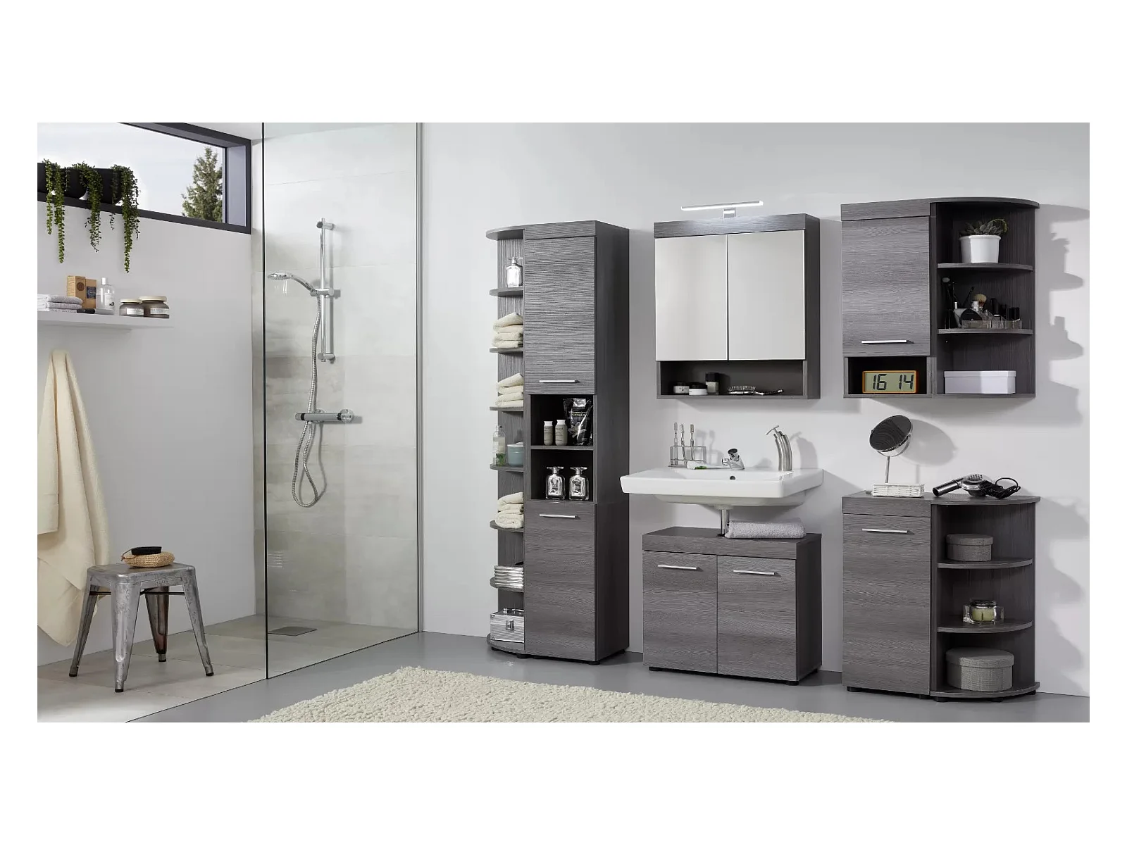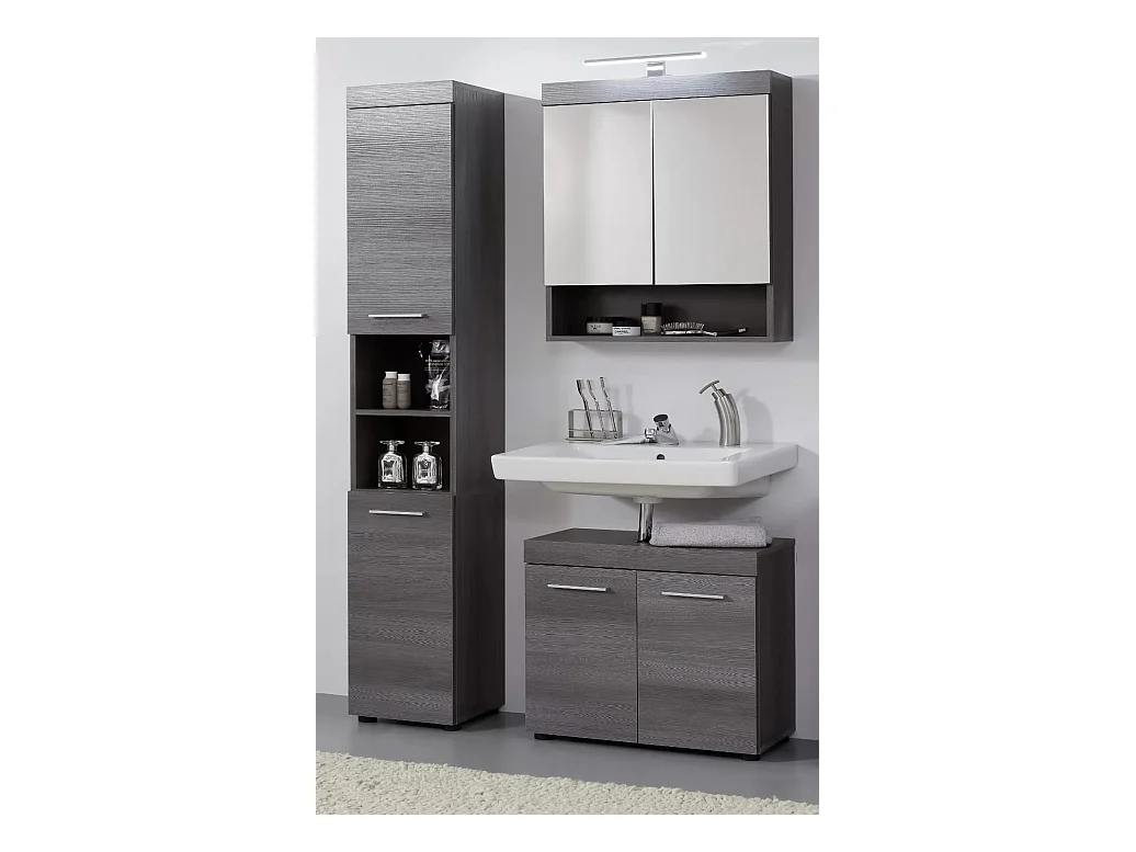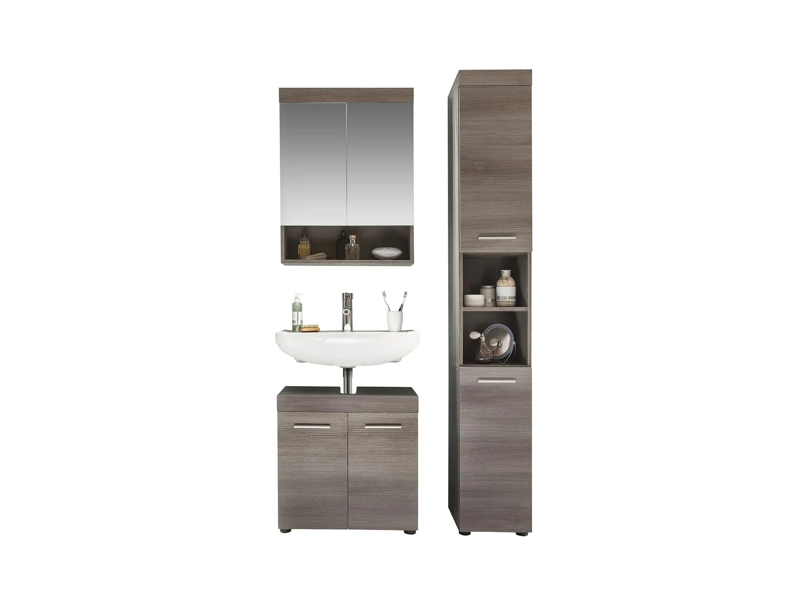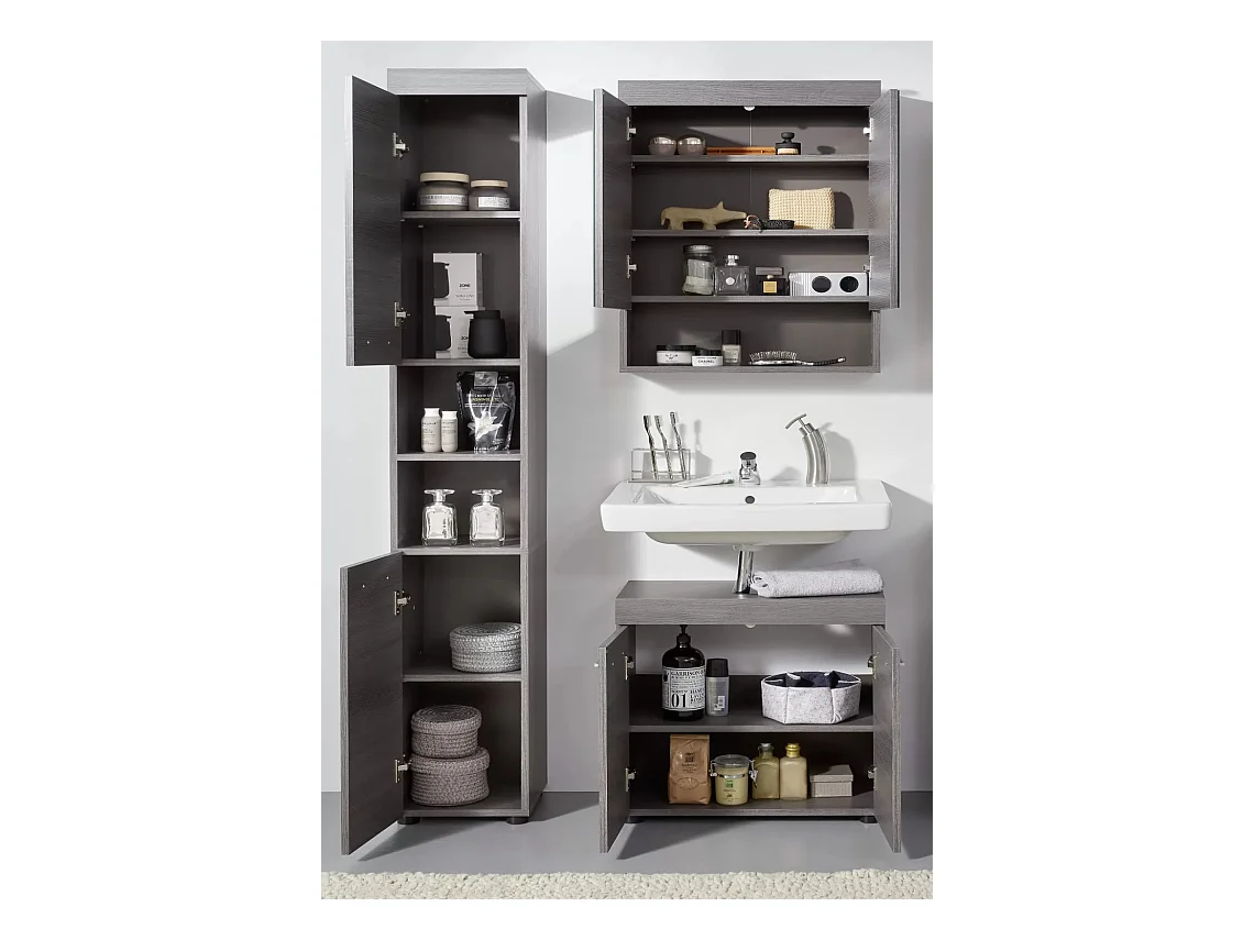 Ensemble meuble salle de bain 3 pièces mélaminé chêne foncé Rune
