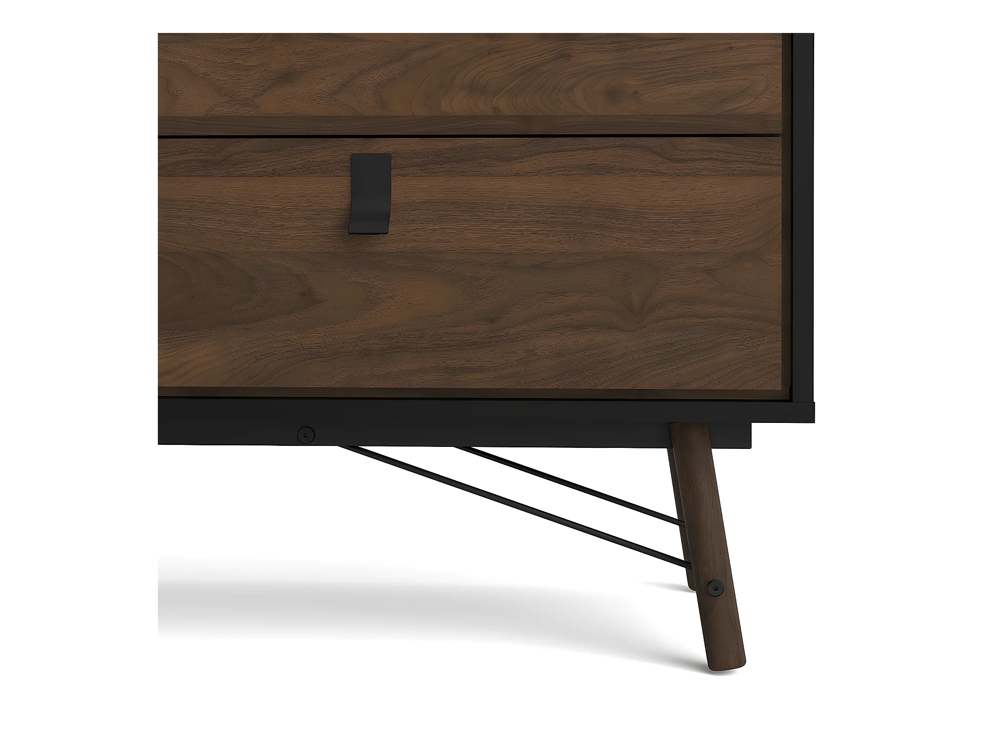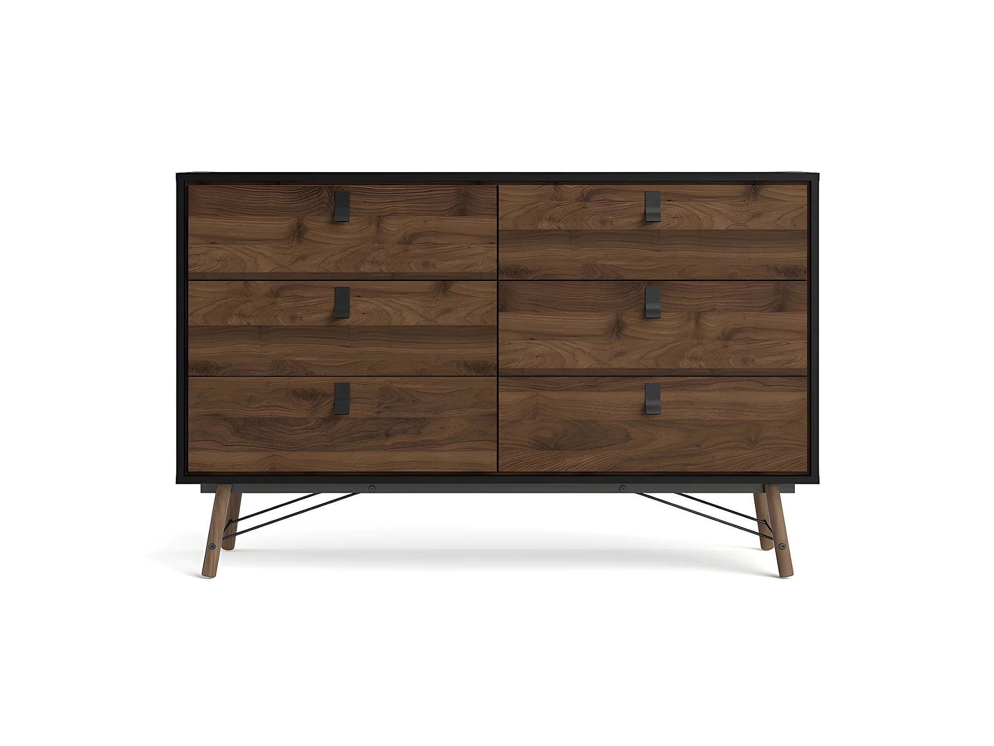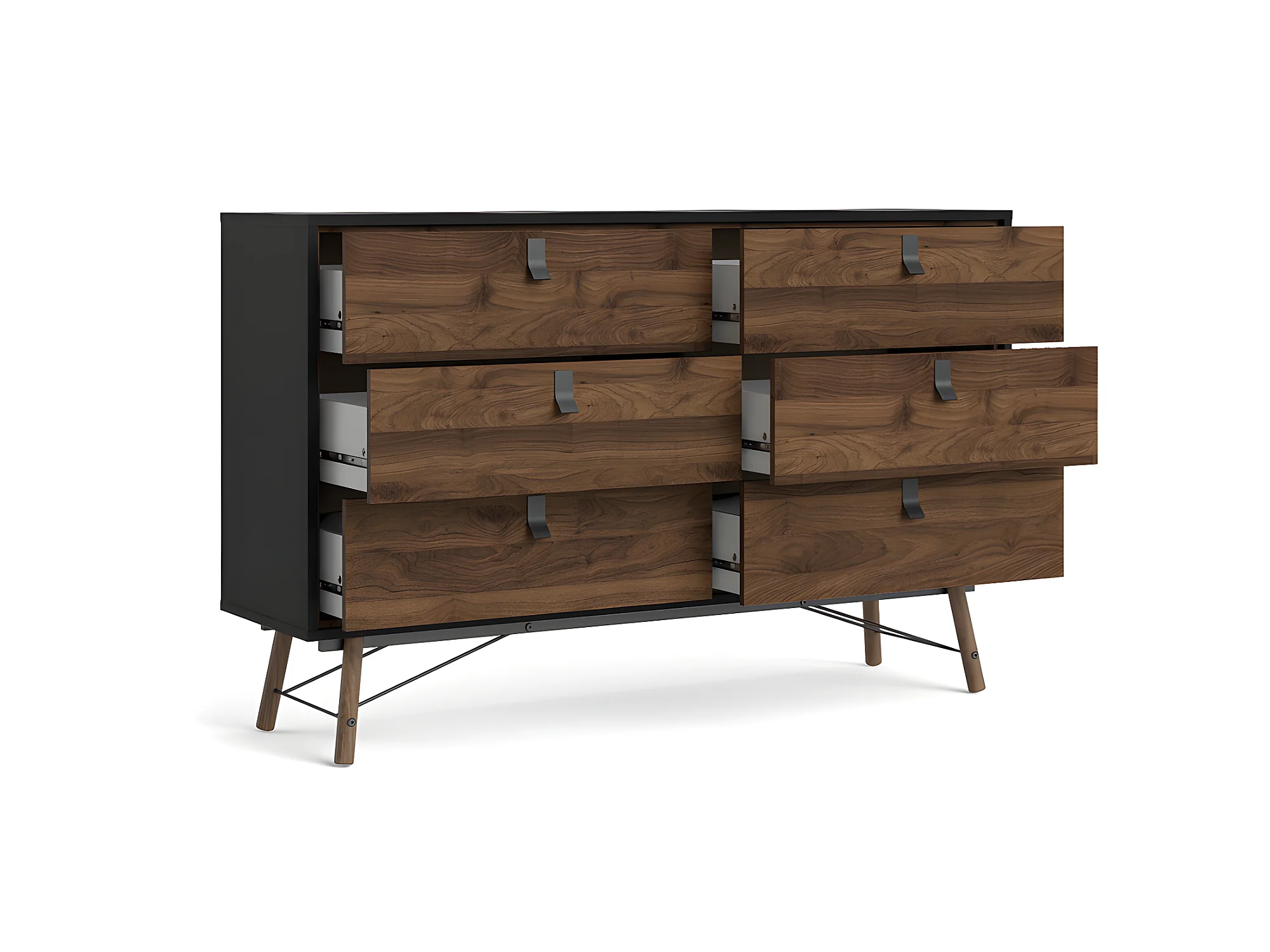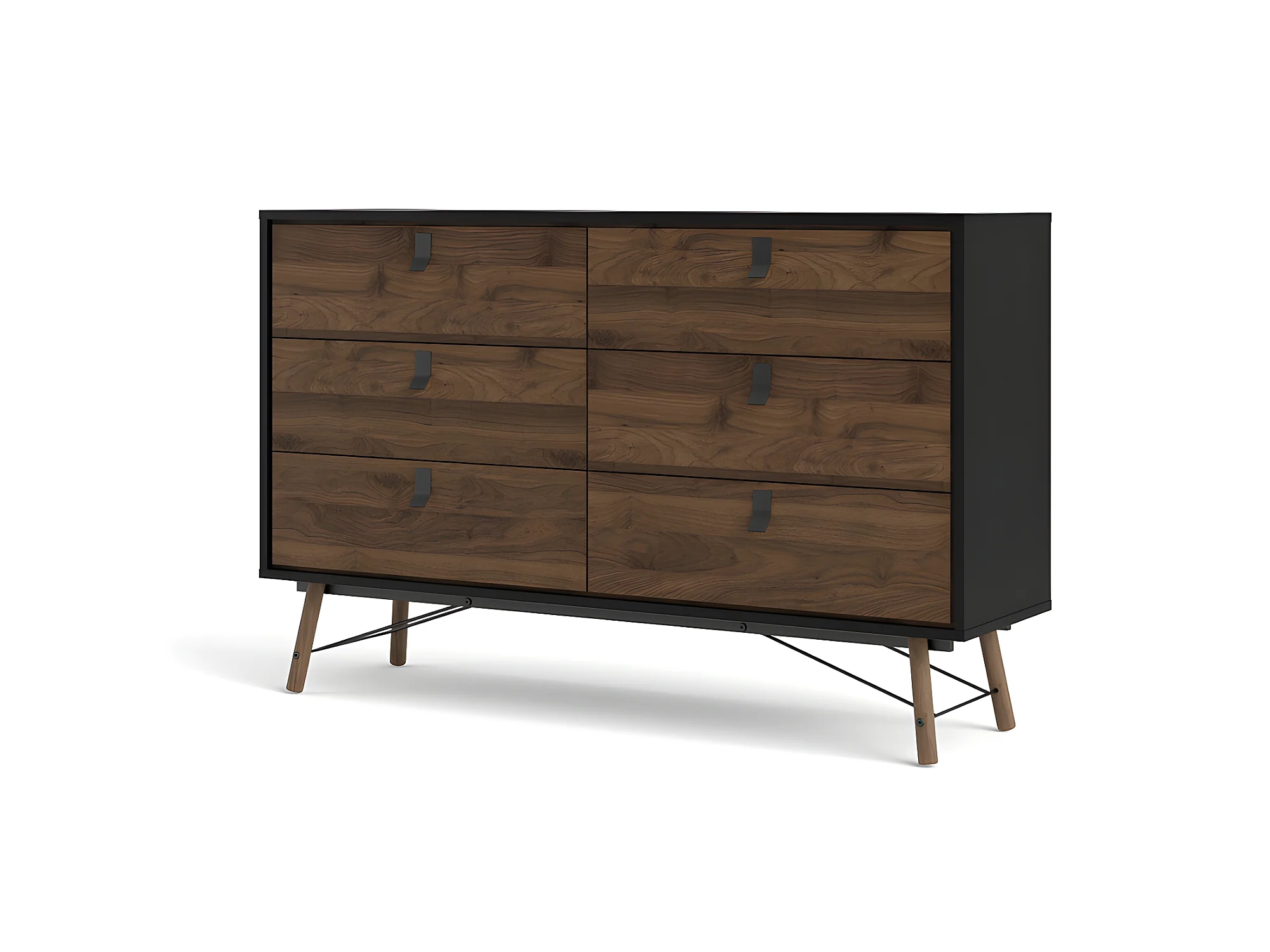 Rye Commode large 6 tiroirs noir mat, teinte noyer.