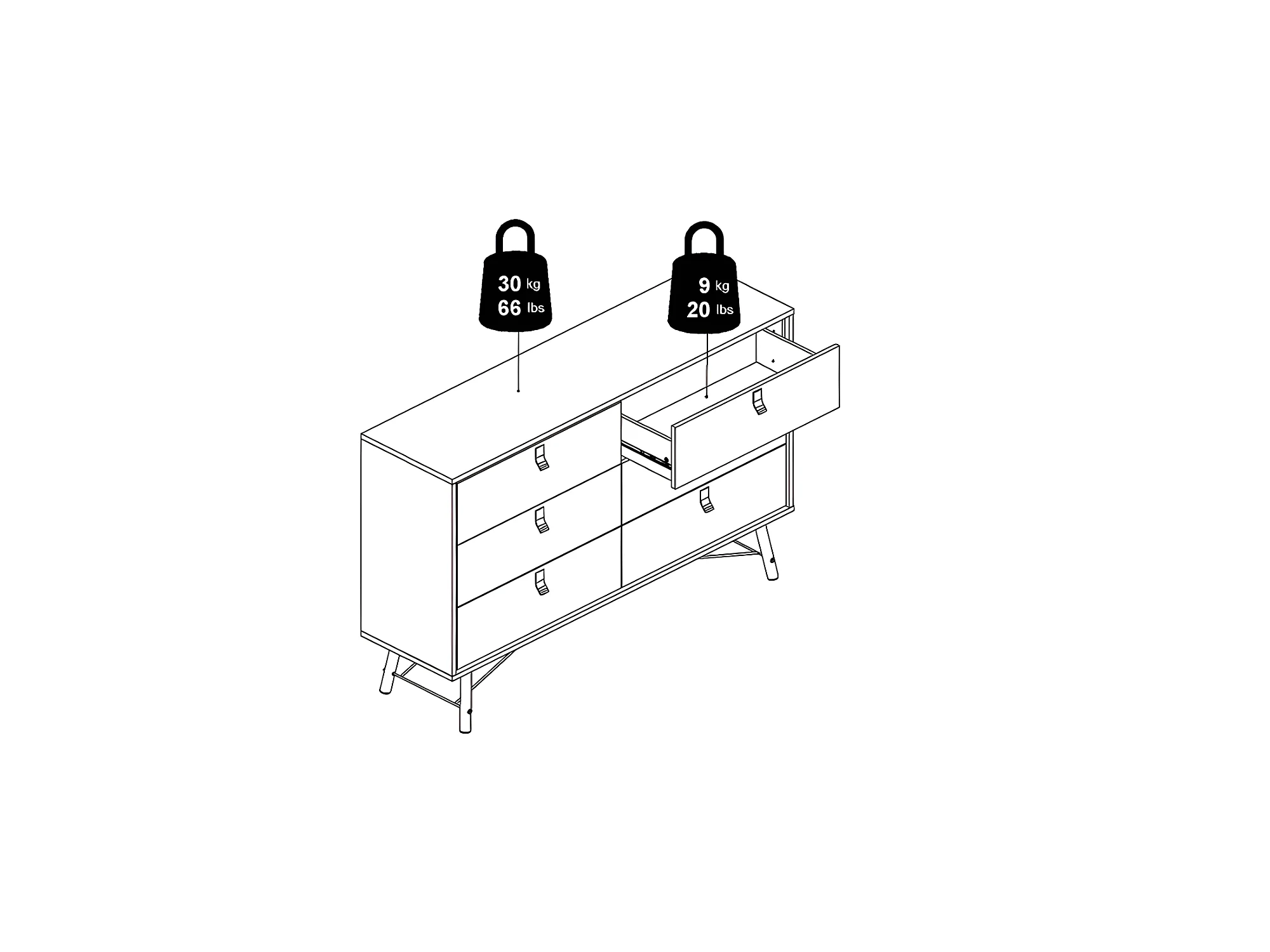 Nada Commode 6 tiroirs, noir mat.