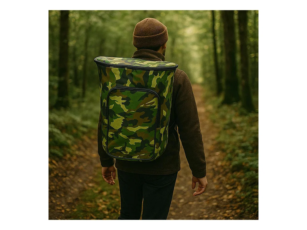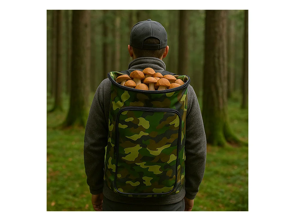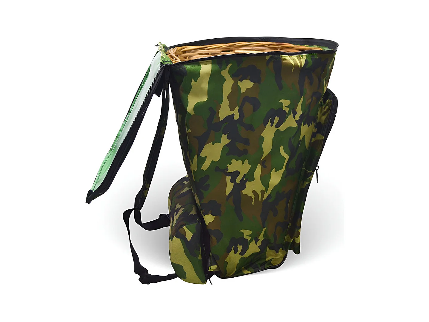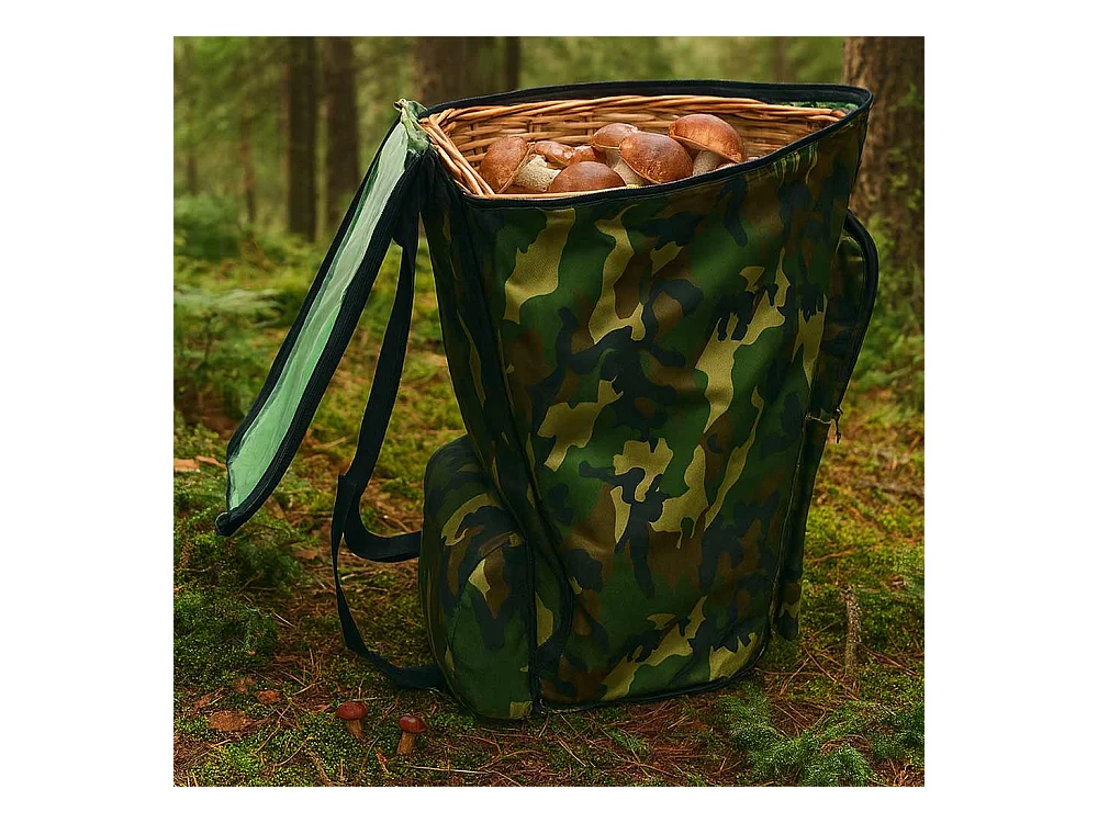 Sac à dos camouflage vert pour champignons avec panier en osier Gerla pour la cueillette des châtaignes