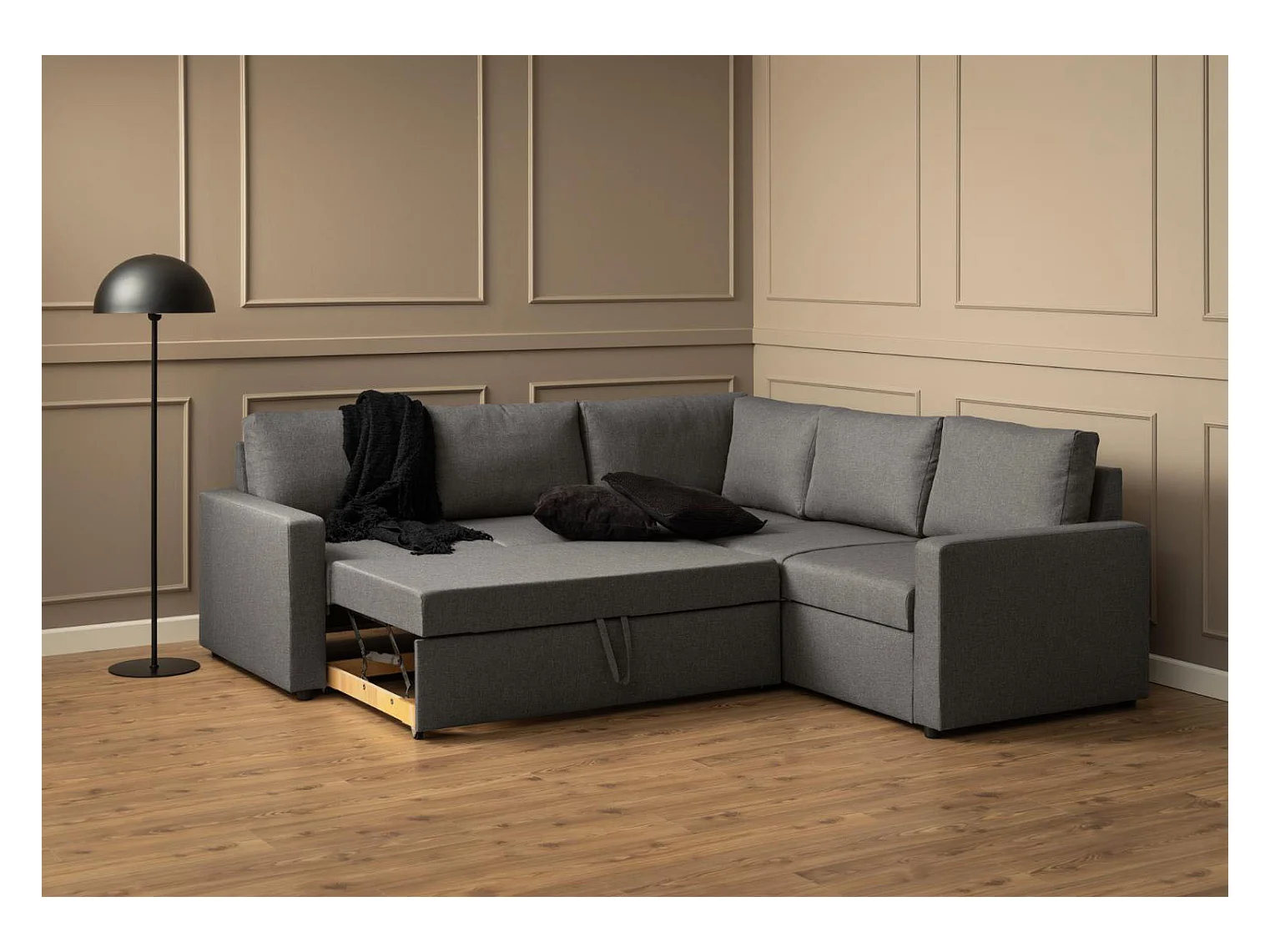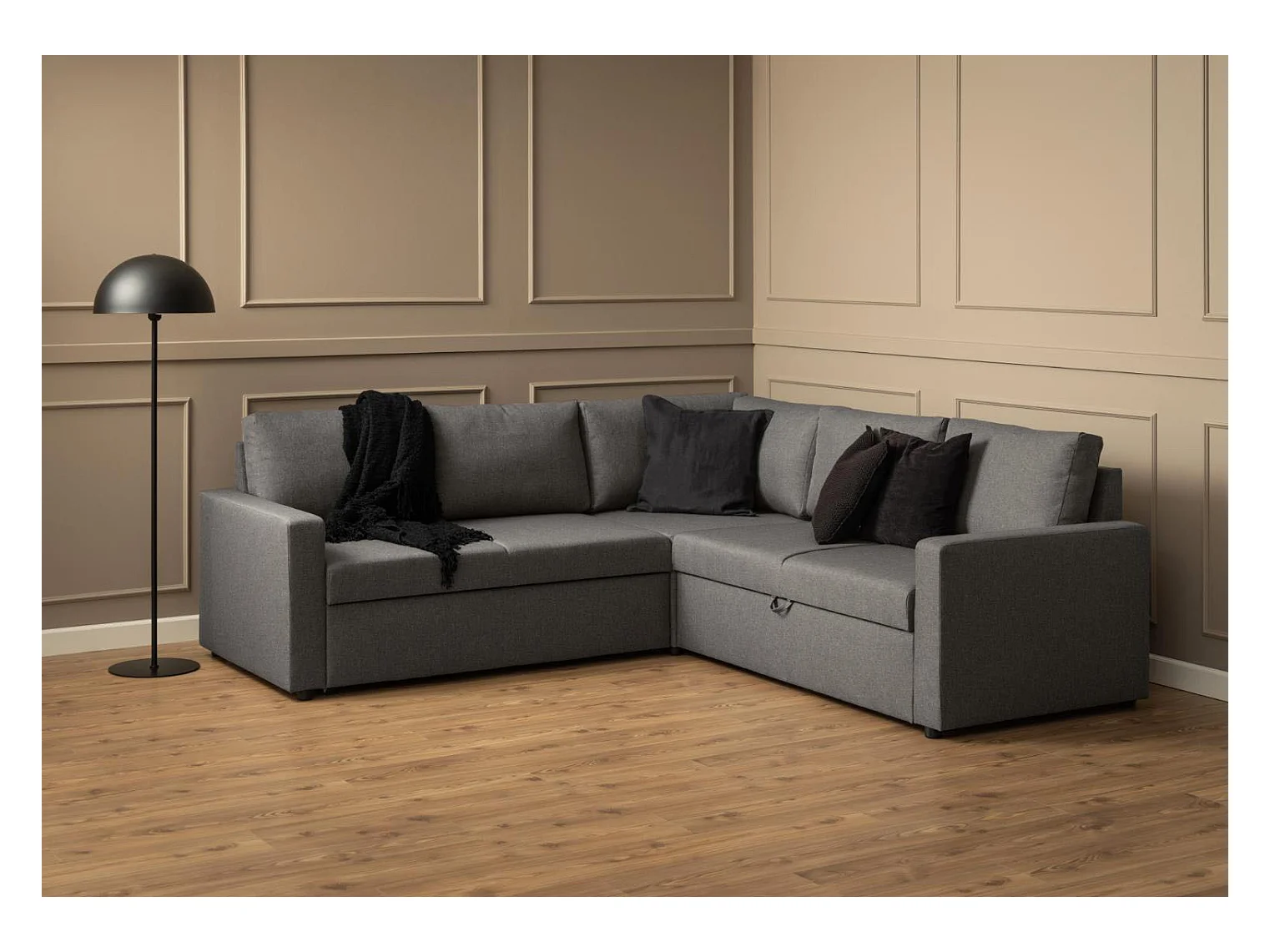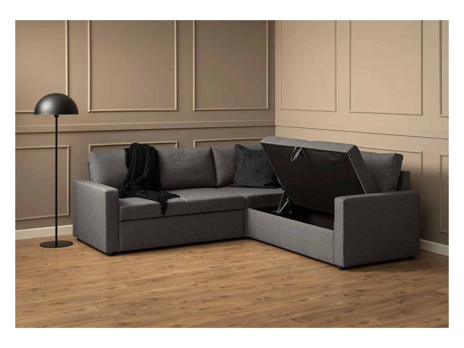 Sacramento Canapé d'angle, espace de rangement dissimulé et lit gigogne, gris.